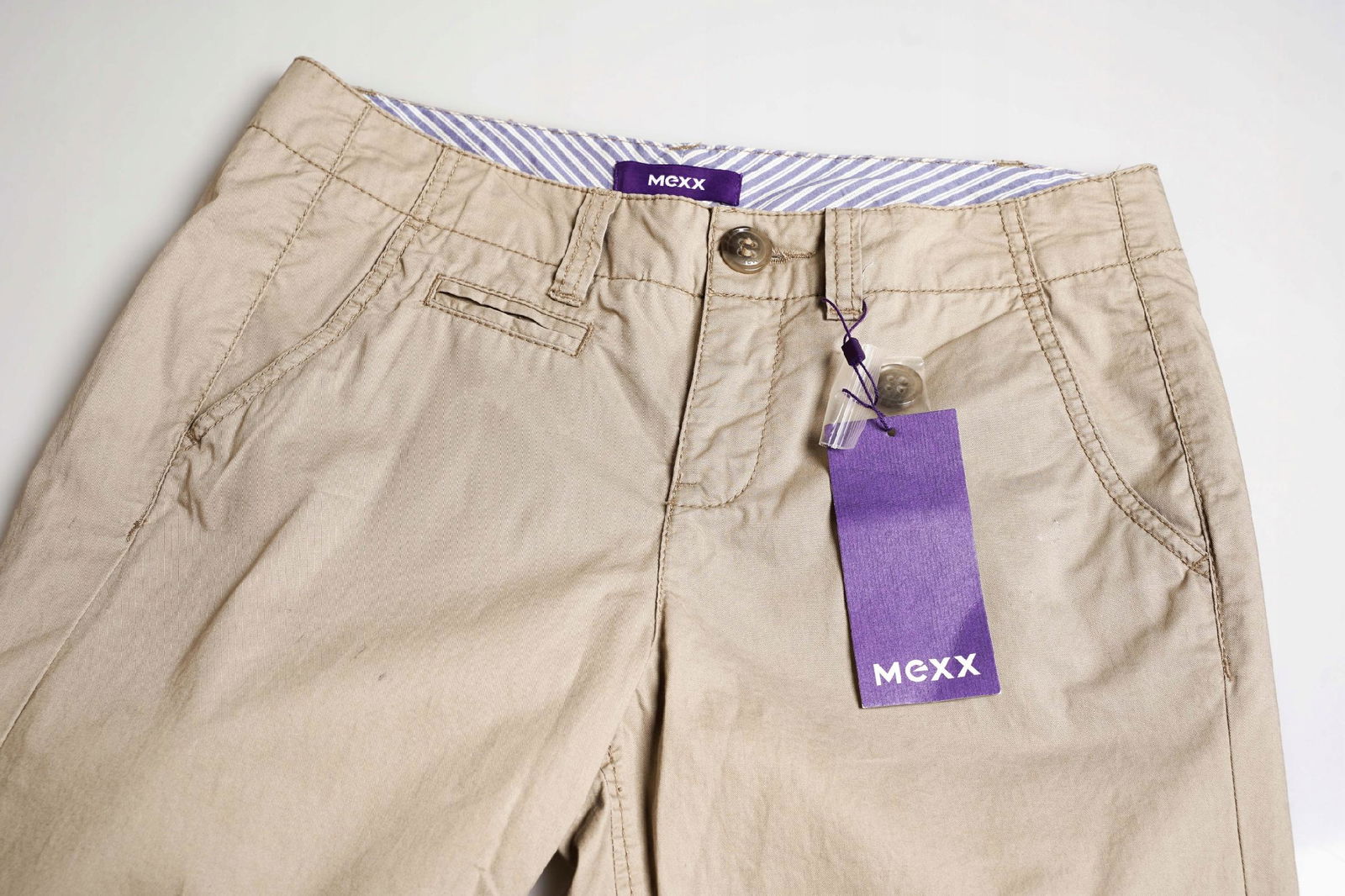 ❇️Produkt jest nieużywany. Firma nasza zajmuje się wyszukiwaniem świetnej jakości ubrań. Tylko produkty markowe oraz marki premium. Nie posiadają uszkodzeń w postaci rozerwań czy zniekształceń materiału, lecz !!UWAGA!! posiadają małą skazę/zabrudzenie - małe 3 punkty zabrudzone na wysokości prawego uda (patrz zdjęcie po lewej). Nie posiadają metki materiałowej wewnątrz (tylko metka z nazwą marki MEXX). Posiadają plakietkę sprzedażową - papierową (tylko przy nowych rzeczach) oraz dodatkowy, zapasowy guzik.