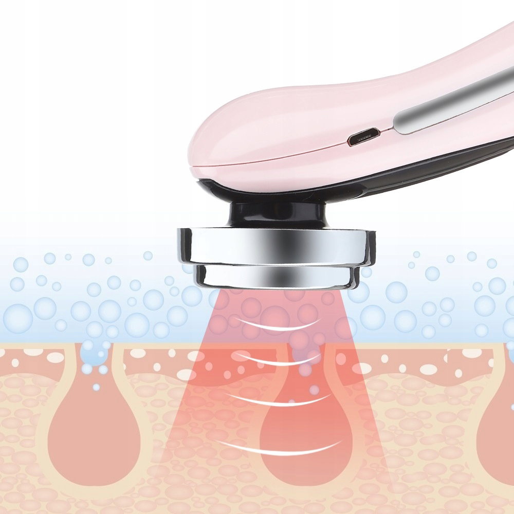 - ✅fototerapia — masażer wprowadza produkt pielęgnacyjny w głąb skóry, czerwone światło wzmacnia aktywność komórek, rozjaśnia i odmładza skórę