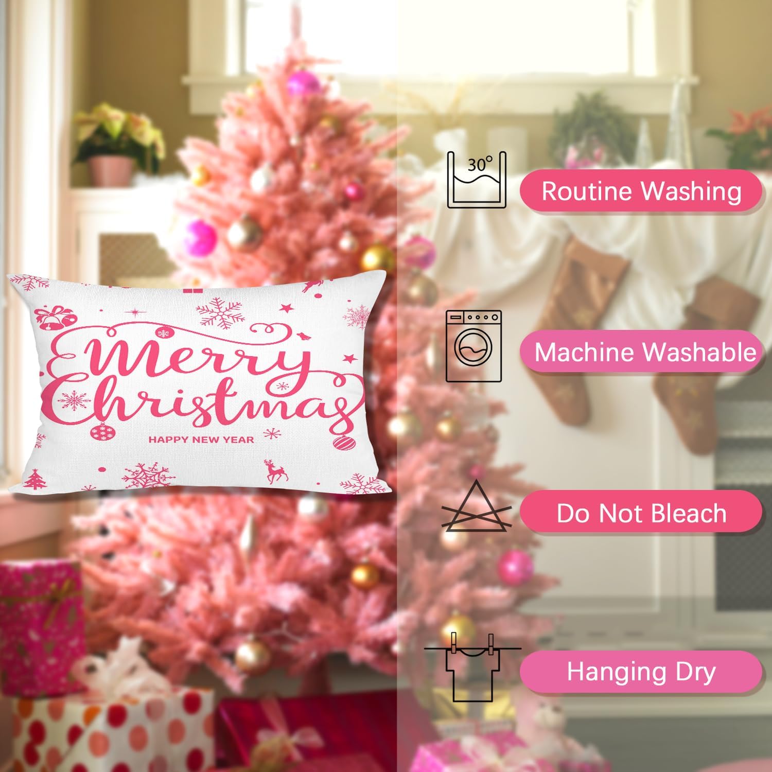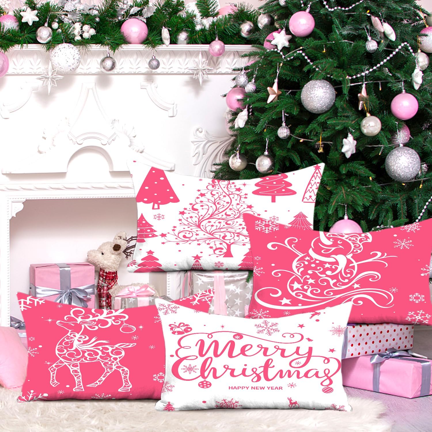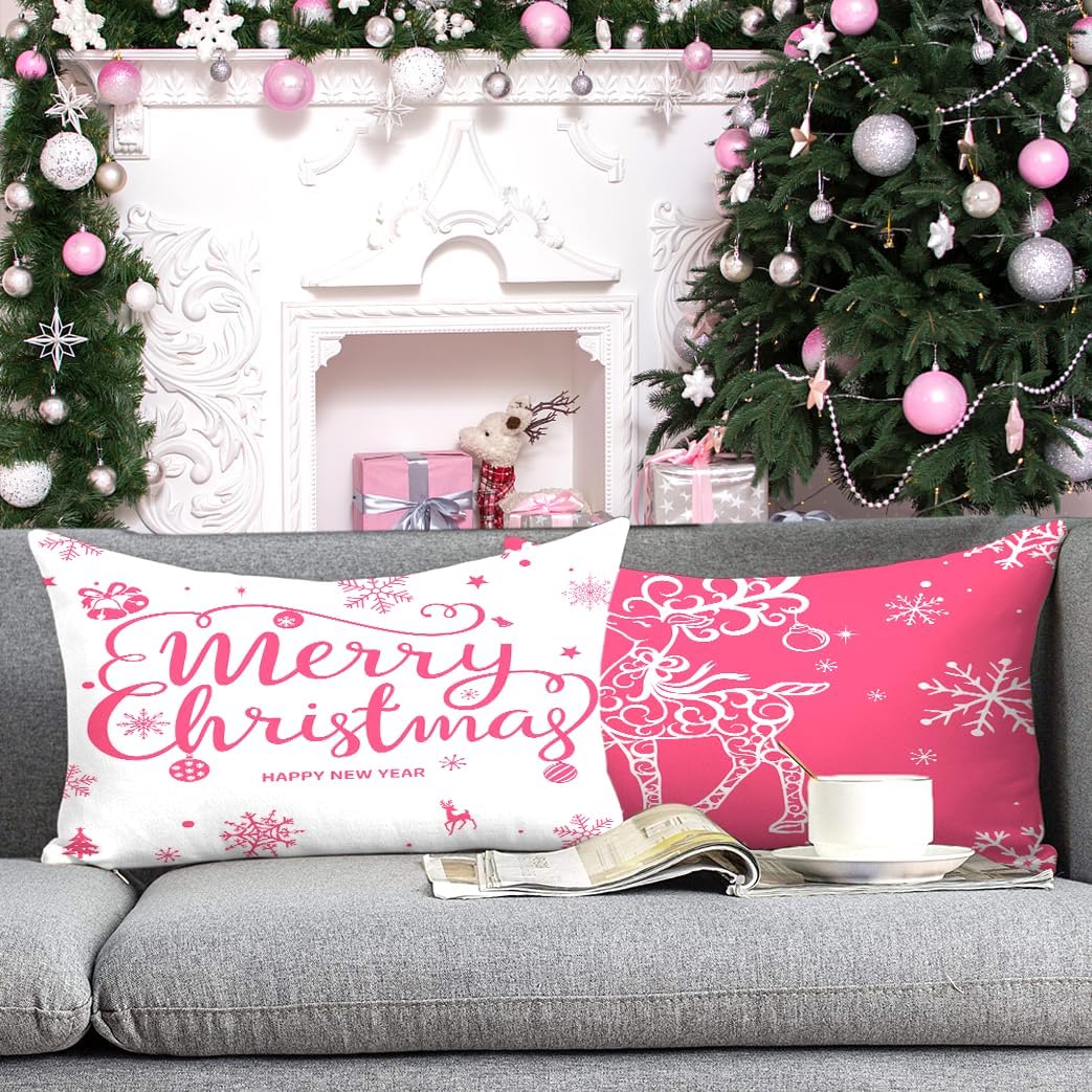 Miaikoe Zestaw 4 Poszewek Świątecznych 30x50cm, Dekoracje Domu - Kolor Róża
