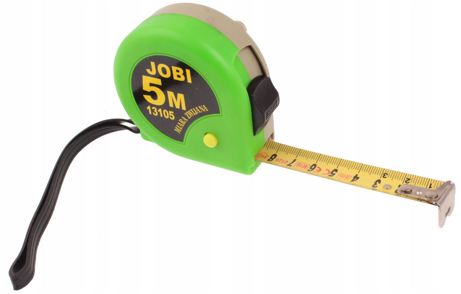 Oferujemy wytrzymałą i praktyczną miarę zwijaną marki JOBI. Dzięki jej solidnej konstrukcji oraz precyzyjnym podziałkom, bez problemu zmierzysz każdy wymiar. Zasięg do 5 metrów i szerokość taśmy 19mm sprawiają, że jest idealna zarówno do zastosowań domowych, jak i profesjonalnych. Niezawodność i precyzja w jednym!