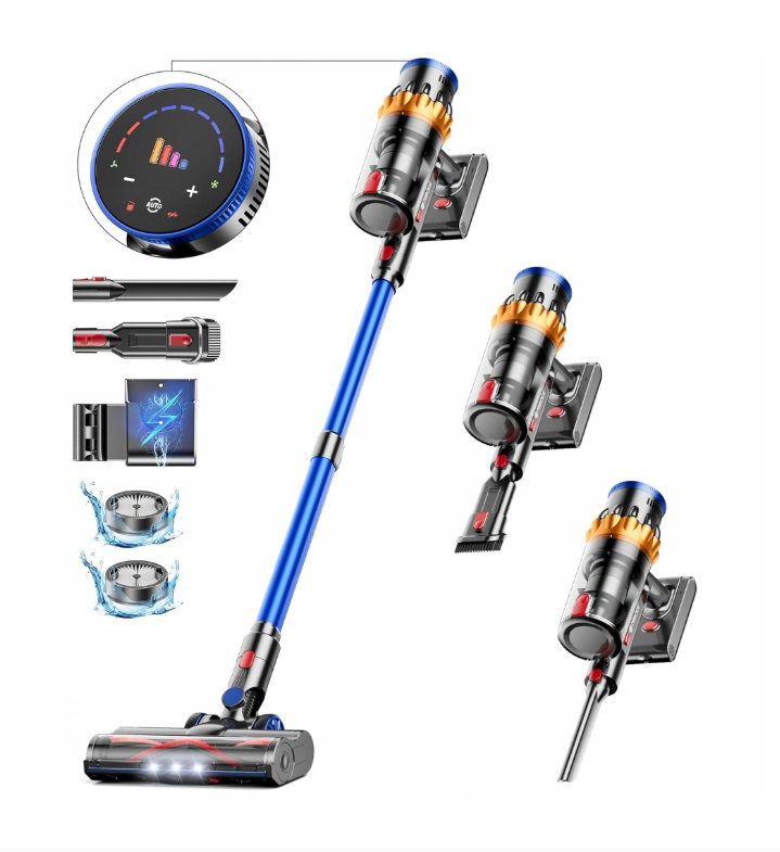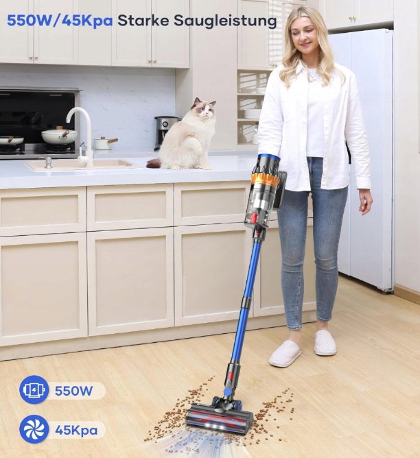 - ✴️ Siła ssania 45000 Pa dla wydajnego sprzątania: Ten bezprzewodowy odkurzacz jest wyposażony w silnik o mocy 550 W, który zapewnia moc ssania 45000 Pa. Pożegnaj drobne cząsteczki, sierść zwierząt i brud na dywanach, twardych podłogach i płytkach. Ciesz się czystością, jakiej nigdy wcześniej nie widziałeś.