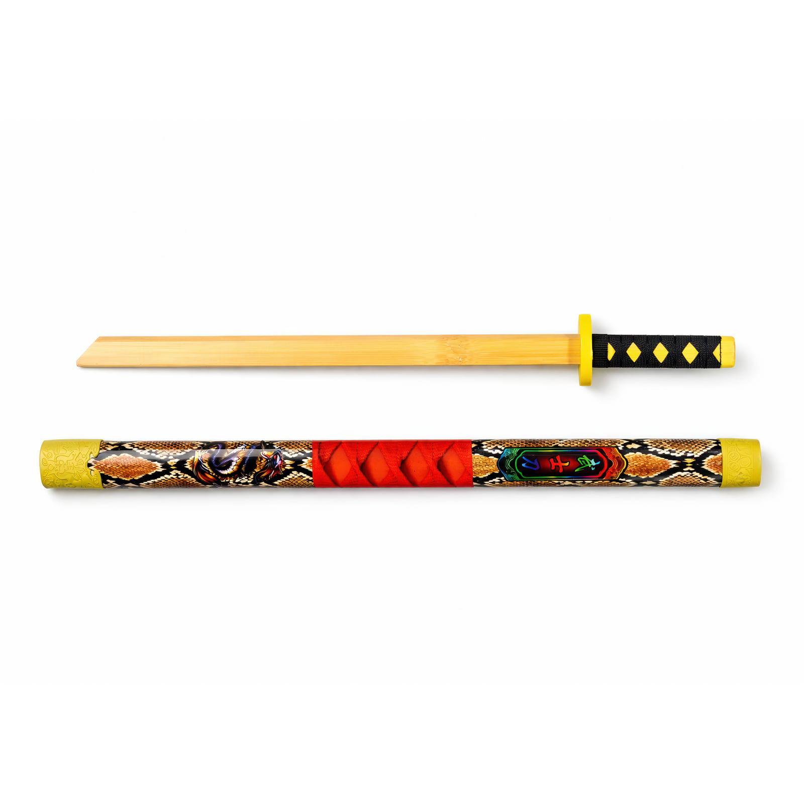 Droga wojownika kutna jest w stali… a w tym przypadku w umiejętnie wykonanym drewnie. Ta 55-centymetrowa katana przywołuje dumną tradycję samurajów, będąc pięknym elementem dekoracyjnym wykonanym w naturalnym wykończeniu z gładką, ciemną owijką rękojeści – idealnym sposobem na uwolnienie ducha Bushido. Subtelne detale przy kabłąku i delikatnie zakrzywione ostrze oddają elegancję tradycyjnego japońskiego szermierstwa, czyniąc ją efektownym dodatkiem do każdej kolekcji. Niezależnie od tego, czy jest wystawiona jako hołd dla legendarnych bohaterów, czy wkomponowana w kostium, ten drewniany miecz jest odpowiednim ukłonem w kierunku ponadczasowego kodeksu.