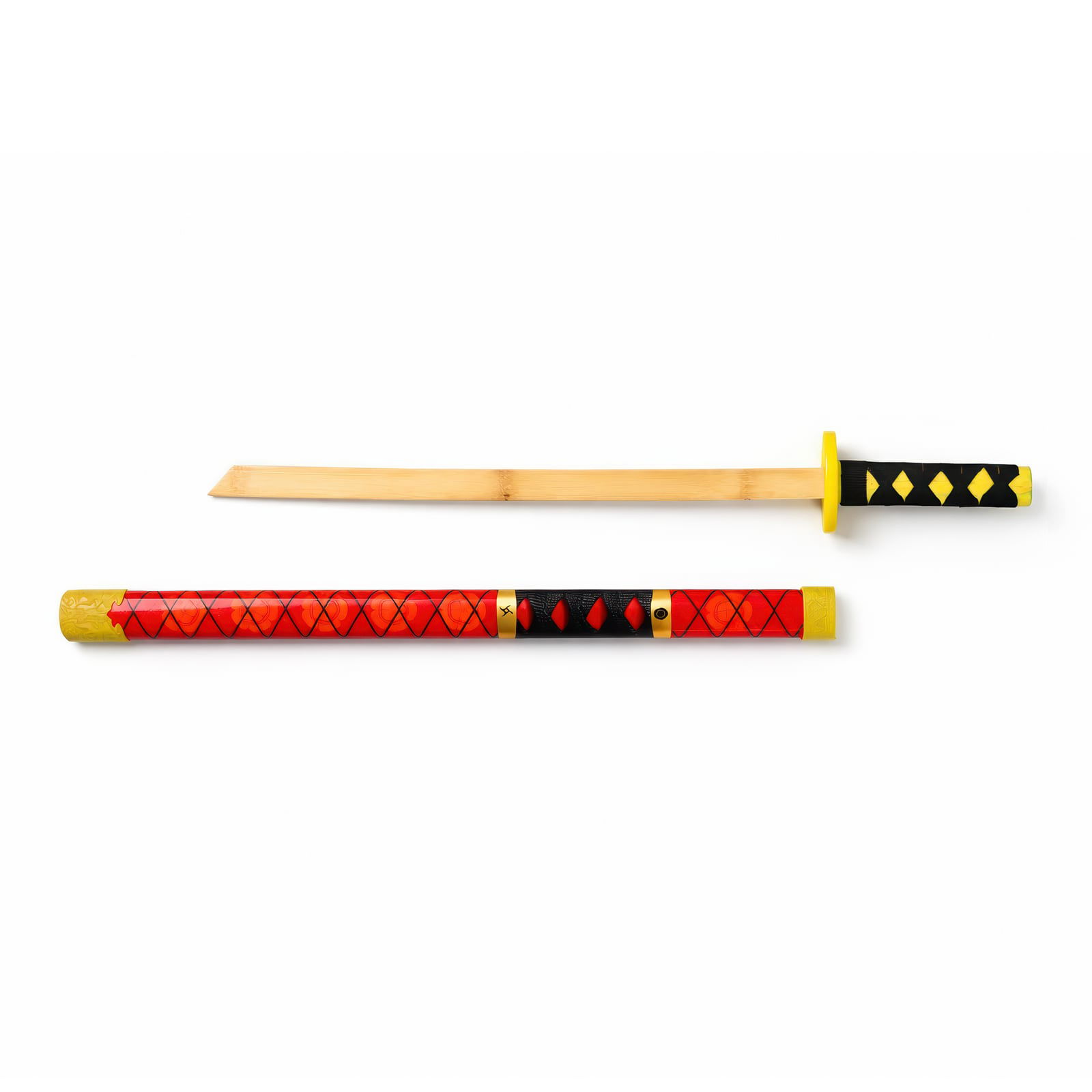 Stal ostrzy stal, ale drewno pamięta drogę wojownika. Ta 55-centymetrowa katana, wykonana z litego drewna, odzwierciedla broń feudalnej Japonii, będąc namacalnym fragmentem tradycji samurajskiej. Zwróć uwagę na gładkie wykończenie i zrównoważone proporcje – projekt wyraźnie przeznaczony do ćwiczonych pozycji i szybkich ruchów. Subtelne detale na rękojeści i głowicy wskazują na artyzm ceniony przez bushido, a sam miecz jest wyczuwalnie solidny w dłoni. Idealna do ekspozycji, kolekcjonowania historycznego lub dodania autentycznego akcentu do twojego cosplayu.