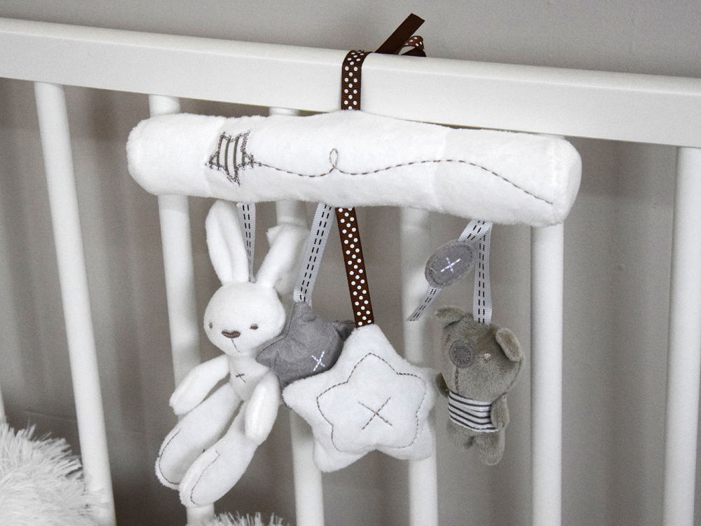 Może być używana zarówno w łóżeczku, jak i na spacerze. Dzięki swojej łatwej w czyszczeniu konstrukcji i uniwersalnemu montażowi na tasiemkach, jest praktycznym i estetycznym dodatkiem do dziecięcego pokoju. Zawieszka posiada różne tekstury i dźwięki, co stymuluje zmysły dziecka oraz wspiera jego rozwój motoryczny i poznawczy. Wymiary zawieszki to 21 cm x 23 cm x 4 cm. Zabawka jest zapakowana w foliowe opakowanie i dostępna w sklepie Jokomisiada. Stwórz idealne warunki do nauki i zabawy dla swojego maluszka!