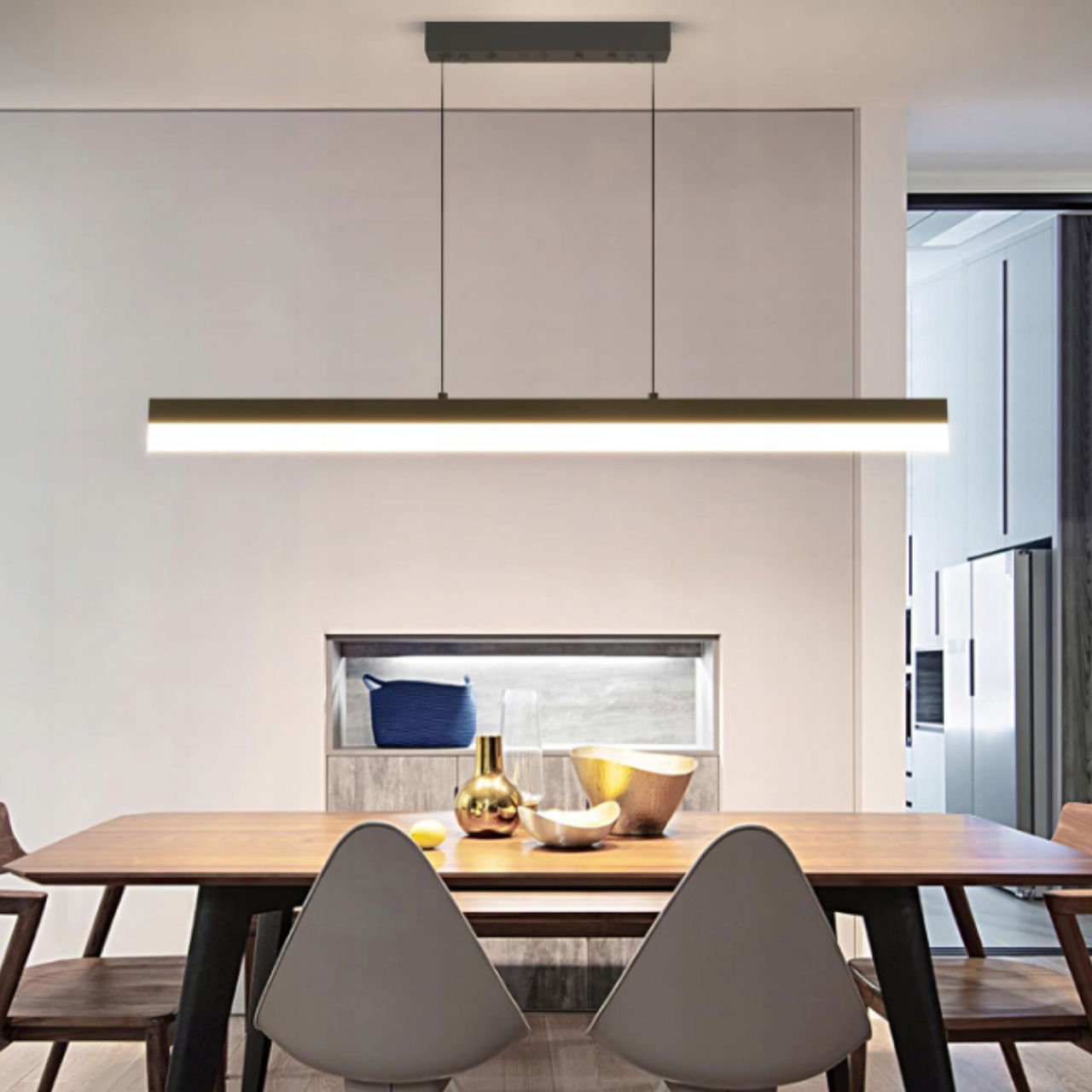 Dzięki kompaktowej długości 80 cm lampa świetnie pasuje do mniejszych przestrzeni, takich jak kuchnie czy biura, ale także do jadalni i salonów.