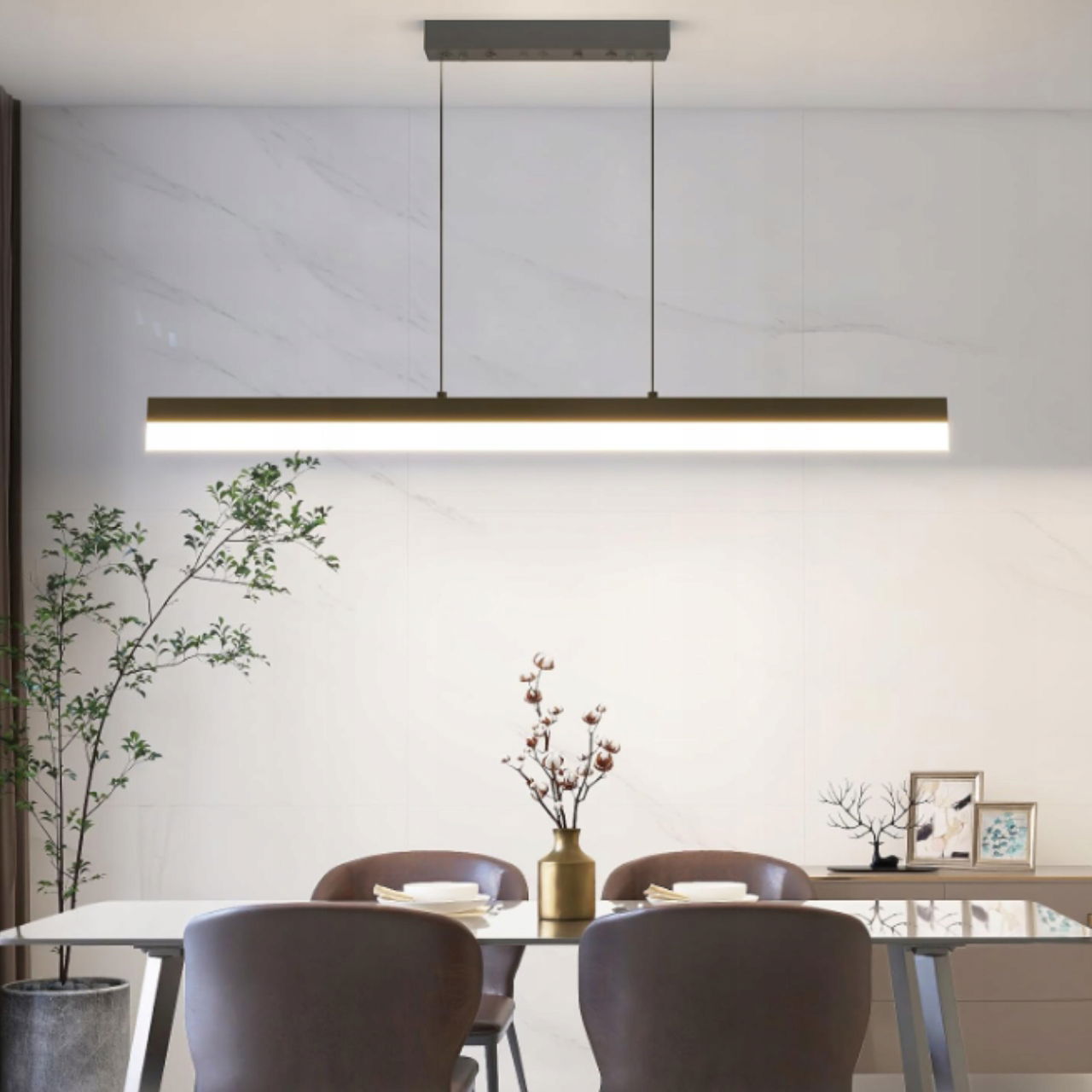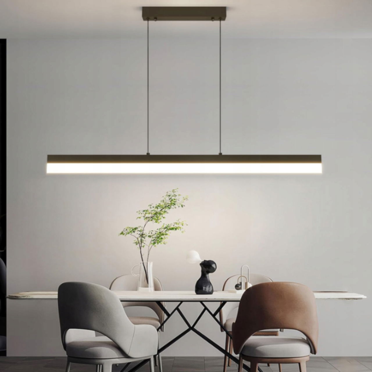 Nowoczesna lampa wisząca LED Mikeru 80 cm to eleganckie i praktyczne oświetlenie, które idealnie wpisuje się w aranżacje nowoczesnych wnętrz. Jej minimalistyczny, liniowy design sprawia, że doskonale komponuje się zarówno z jadalnią, kuchnią, jak i biurem czy salonem. Dzięki wysokiej klasie energetycznej A lampa jest wyjątkowo oszczędna w eksploatacji, zapewniając przy tym wydajne i przyjemne światło. Regulowana wysokość pozwala na pełne dopasowanie do różnych pomieszczeń i stylów aranżacyjnych.
