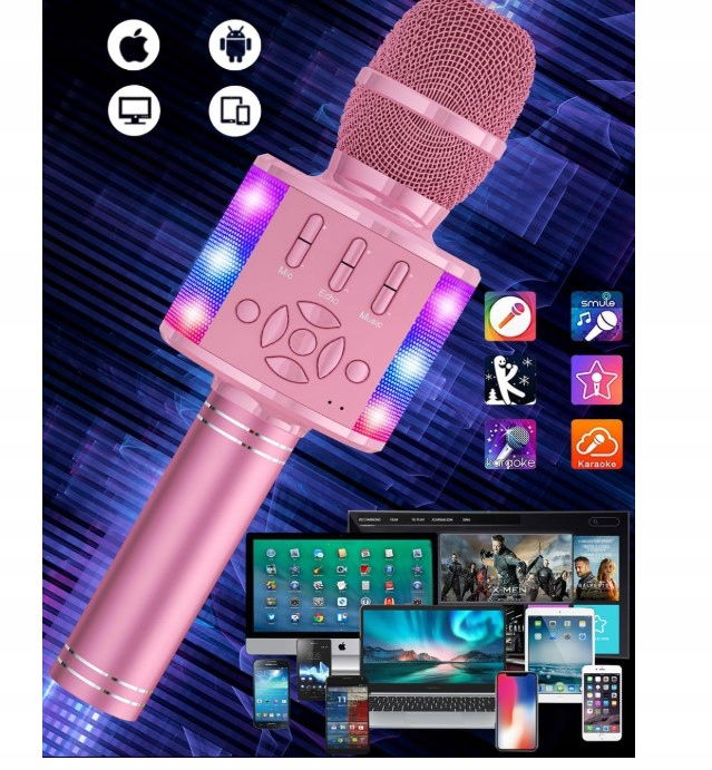 Dzięki wspaniałym kolorom, migającym światłom Twoje imprezy już nigdy nie będą takie same po odkryciu tego bezprzewodowego mikrofonu do karaoke, który sprawi wiele radości zarówno dzieciom, jak i dorosłym.