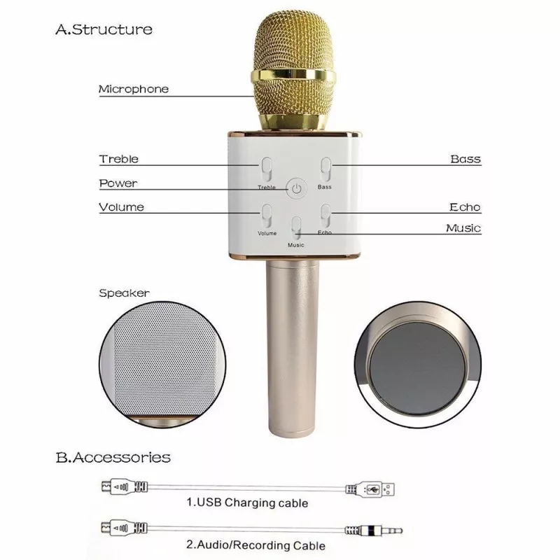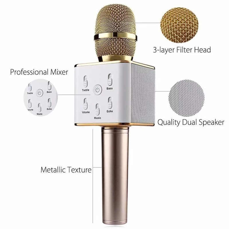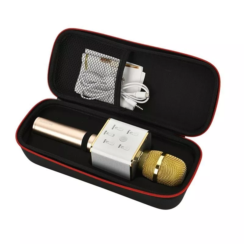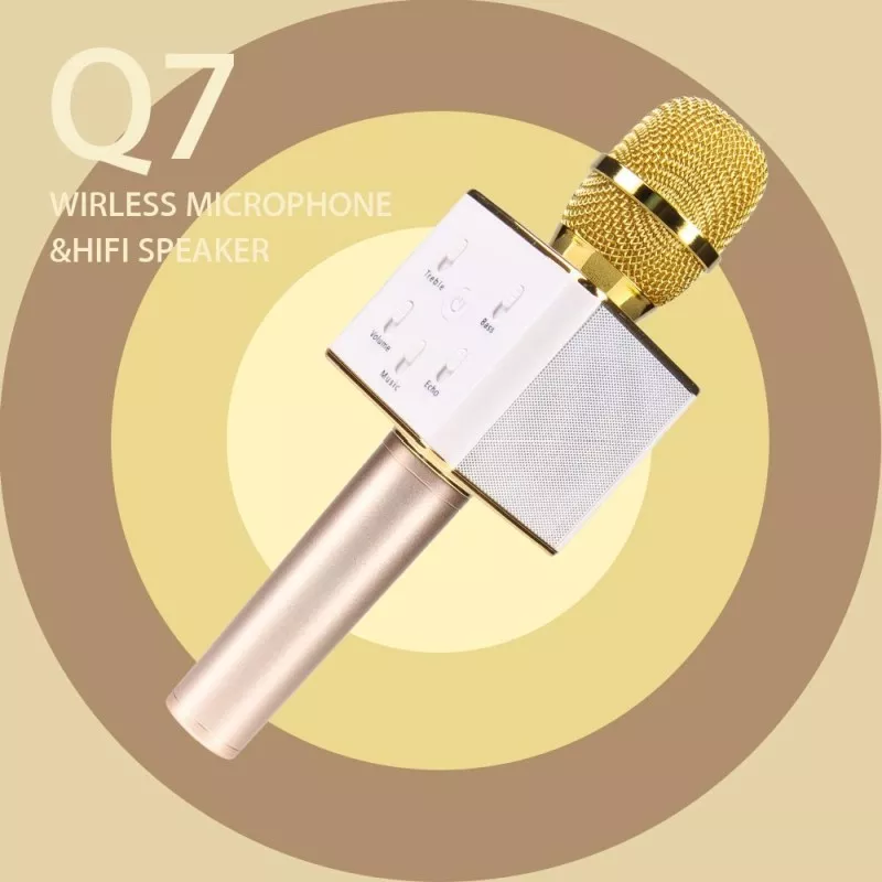 Bezprzewodowy mikrofon karaoke najnowszy i najwyższy model Q7 z wbudowanymi głośnikami bluetooth , radiem fm funkcją nagrywania i czytnikiem kart SD w czterech kolorach do wyboru, mikrofon idealnie nadaje się na imprezy karaoke jak też jako przenośny odtwarzacz mp3 , radio.