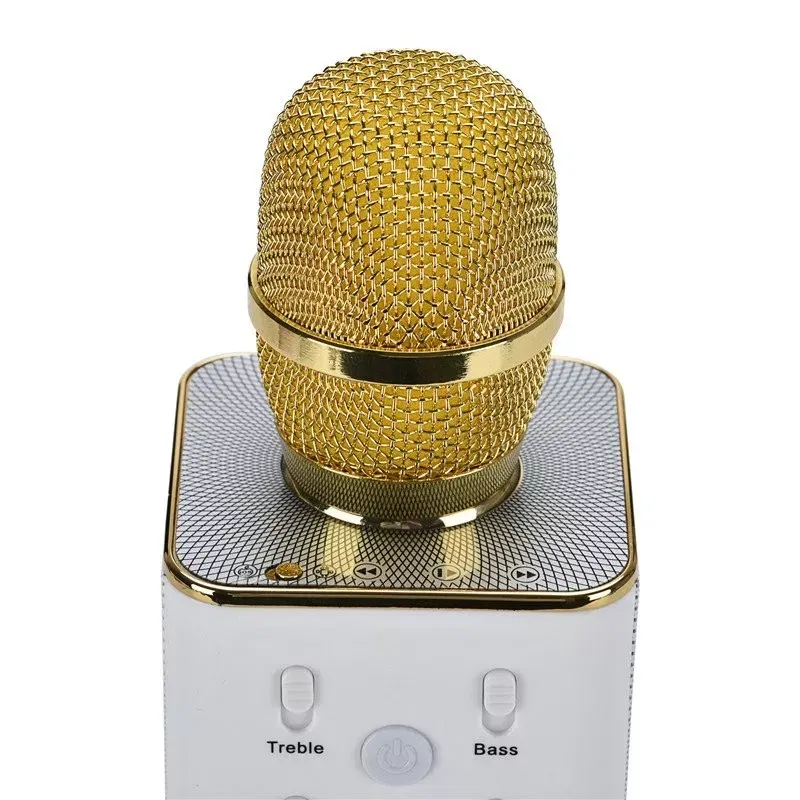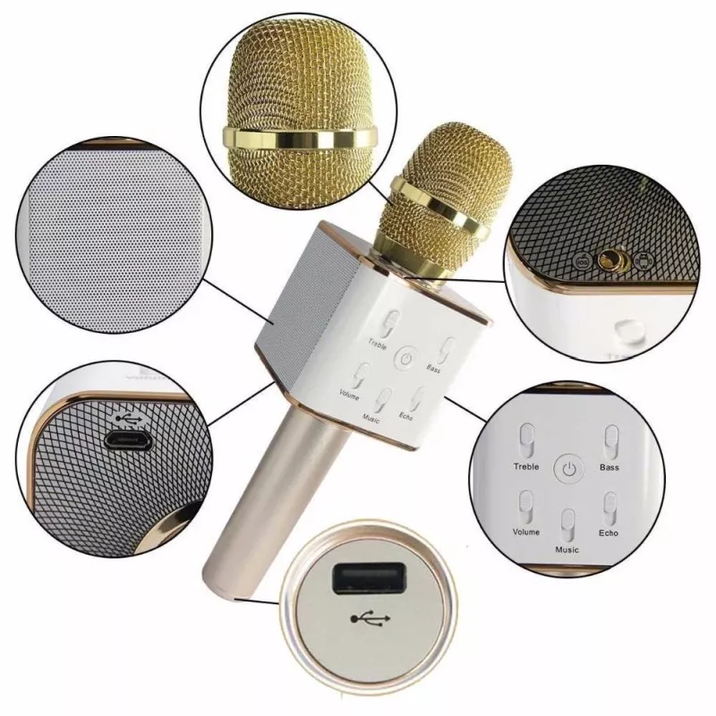 Mikrofon karaoke Q7 z wbudowanymi głośnikami i bluetooth Złoty