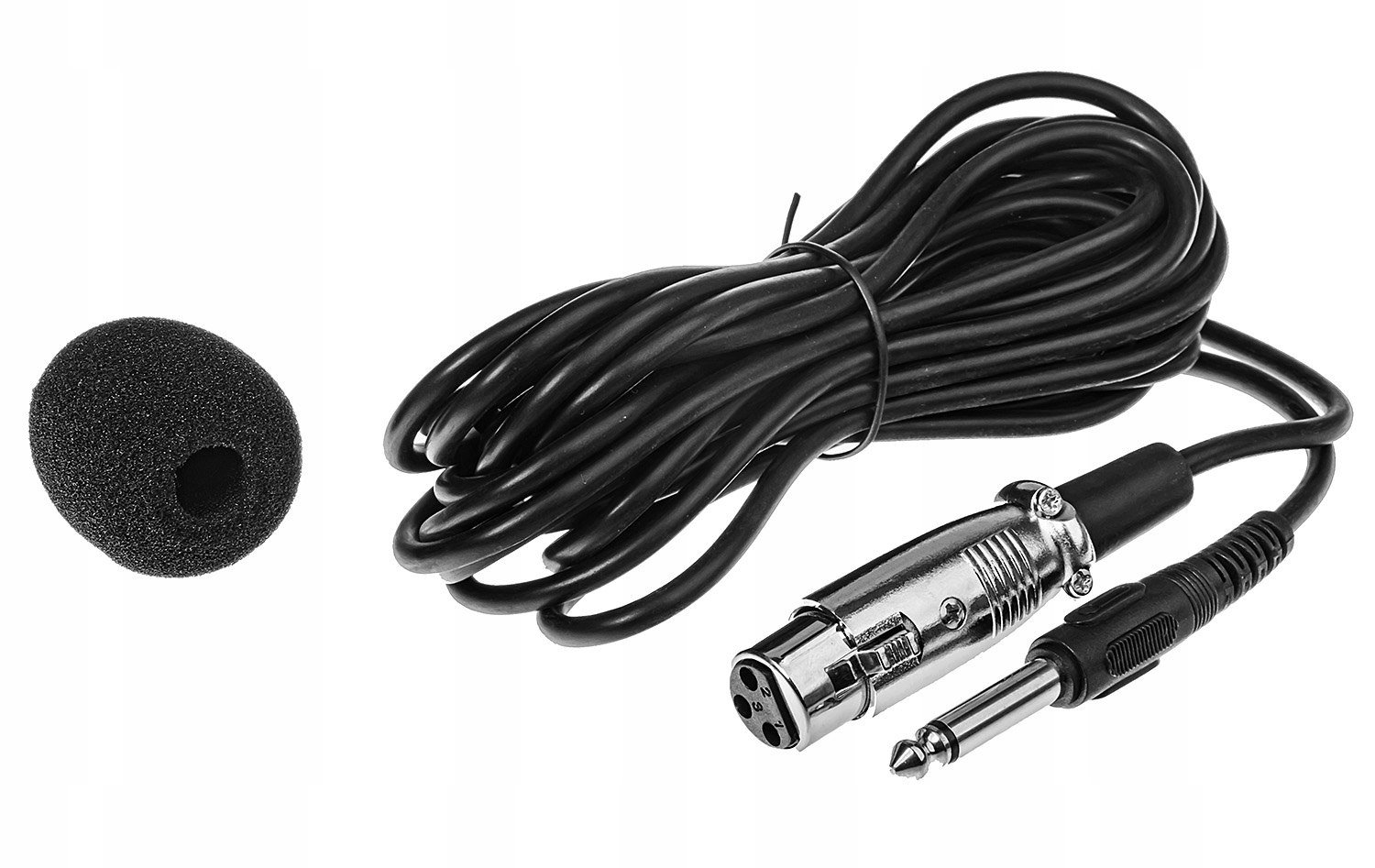 W zestawie z mikrofonem znajduje się przewód mikrofonowy XLR o długości około 5 metrów z przejściówką Jack 6,3 mm oraz wiatrochron, który redukuje niepożądane podmuchy powietrza i poprawia jakość przekazywanego dźwięku.