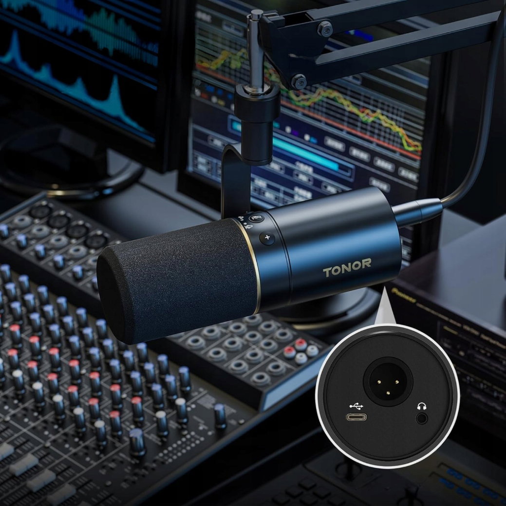 Mikrofon TONOR USB/XLR, wysokiej jakości dynamiczny mikrofon studyjny z wysięgnikiem do nagrywania podcastów, gier, strumieniowego przesyłania muzyki, śpiewu i emisji głosu, słuchawkowym 3,5 mm TD510+