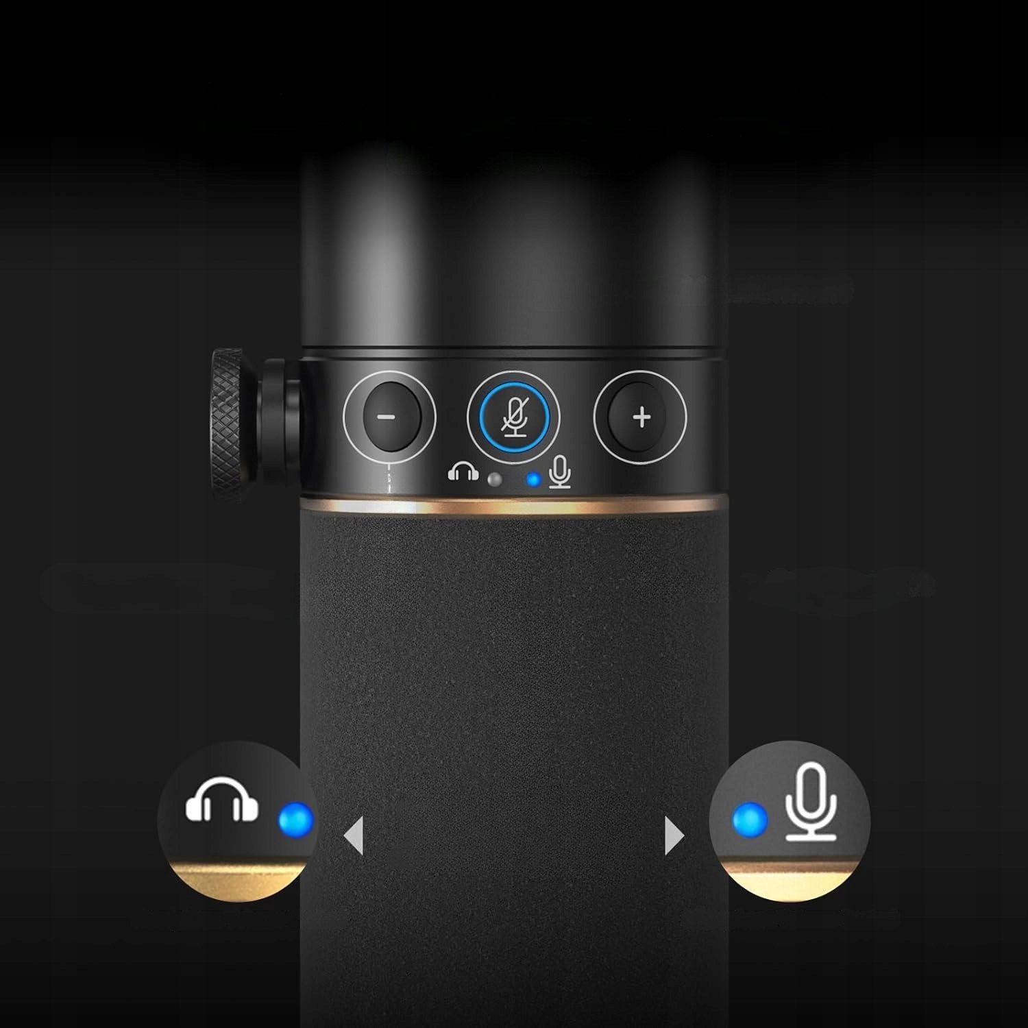 - Kontrola i monitoring: wbudowane przyciski umożliwiają wygodną regulację głośności oraz szybkie wyciszenie mikrofonu. Gniazdo słuchawkowe 3,5 mm pozwala na monitoring głosu w czasie rzeczywistym, co ułatwia kontrolę nagrania bez opóźnień. Rozwiązanie to szczególnie docenią streamerzy i podcasterzy pracujący na żywo.