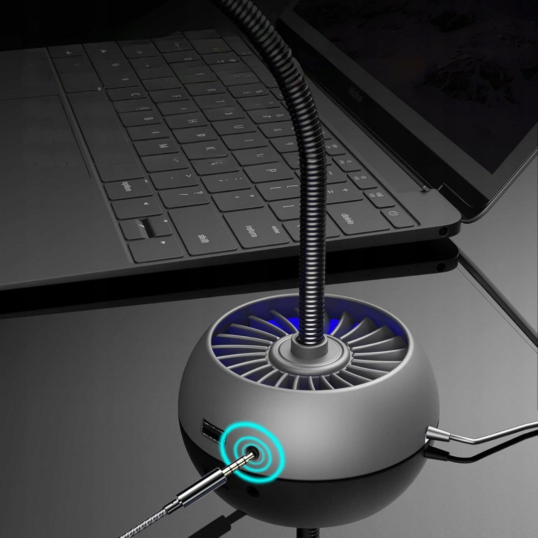 - Konstrukcja 360°: obrotowa konstrukcja mikrofonu pozwala na łatwą regulację wysokości i kąta ustawienia, zapewniając wygodne dopasowanie do potrzeb użytkowania. Elastyczna, metalowa szyjka typu „gęsia szyja” umożliwia zbieranie dźwięku z wysoką czułością w zakresie 360°, co gwarantuje optymalne warunki podczas gier, dyktowania i rozmów.