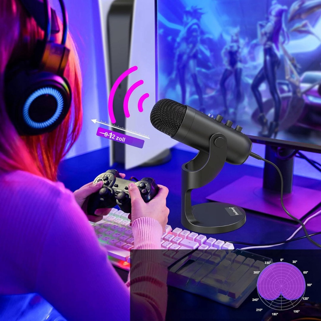 - Zastosowanie: mikrofon idealny do studia domowego, gier, streamingu gier, Switch, podcastów, nagrywania audio/wideo/śpiewu/instrumentów, transmisji na żywo, streamingu na TikTok, nagrań głosowych, blogowania, nagrań wokalnych lub śpiewu online, spotkań Zoom, czatów Skype, konferencji/lekcji online, dla YouTuberów, Smule, Garageband, Discord i innych.