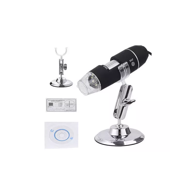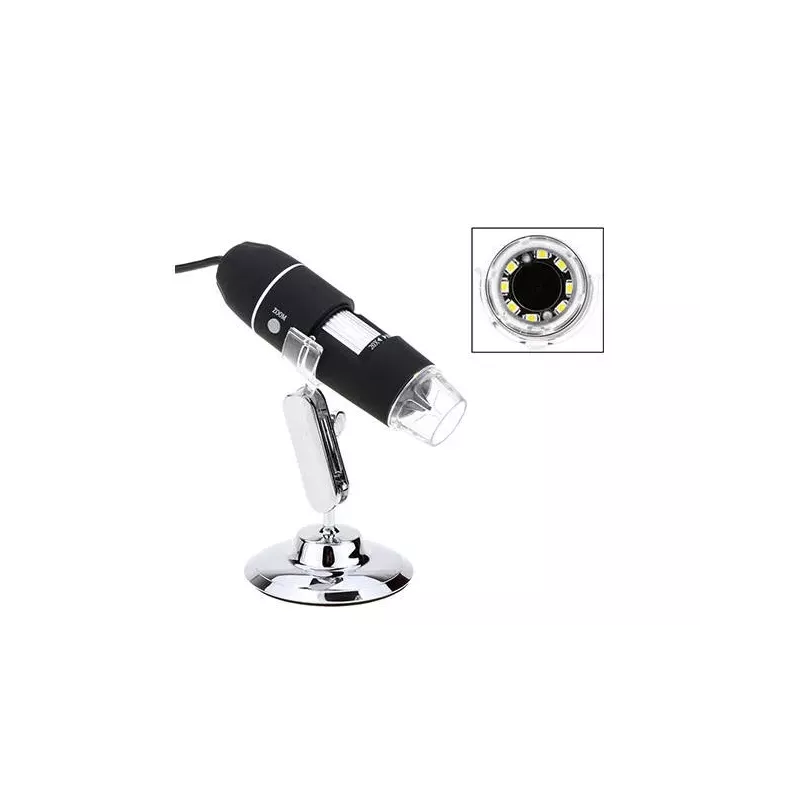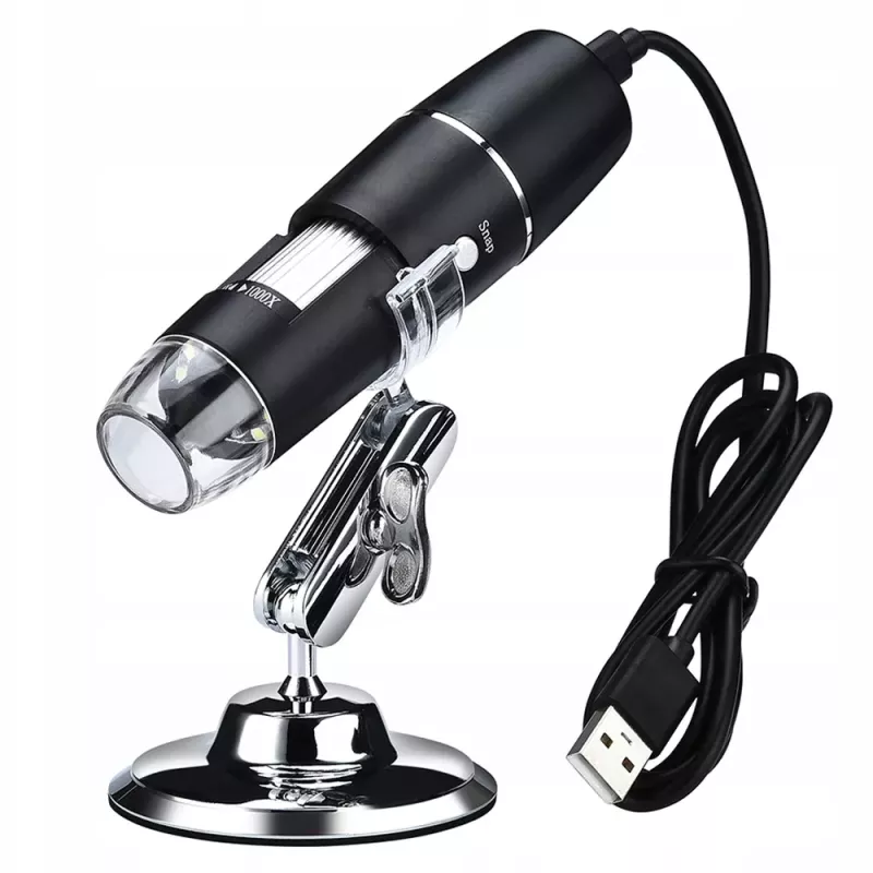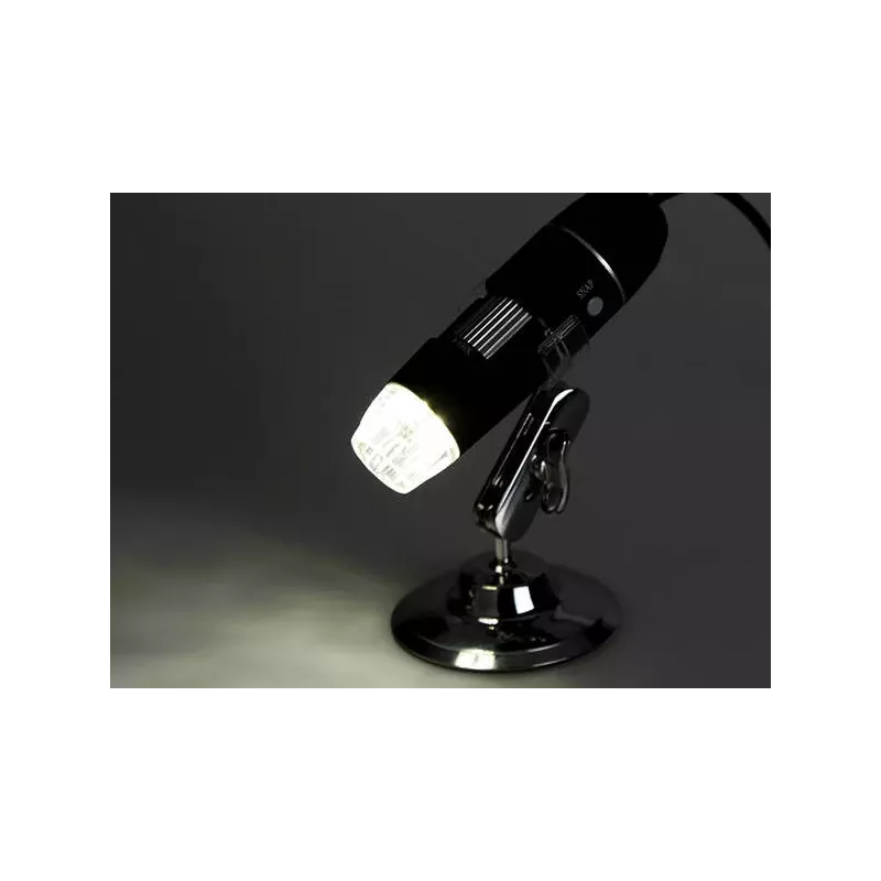 Mikroskop profesjonalny o powiększeniu do 1000x oraz z podświetleniem LED pozwala na dostrzeżenie najmniejszej rysy czy linii papilarnej na dłoni. Pozwala zobaczyć o wiele więcej niż jest to możliwe gołym okiem. Wykorzystuje interfejs USB do podłączenia do komputera lub laptopa, dzięki czemu