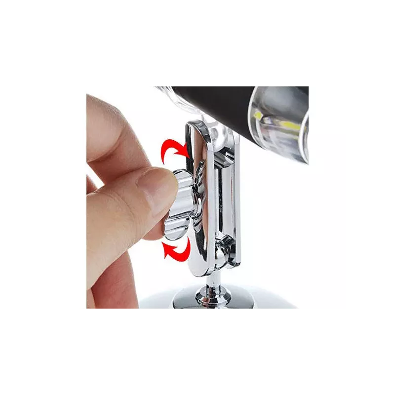 ✅ Mikroskop można trzymać w dłoni lub ustawić na specjalnym, regulowanym statywie