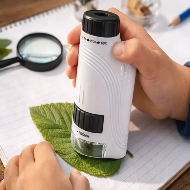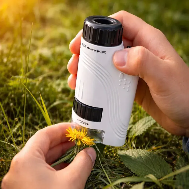Kompaktowy mikroskop ręczny to idealne narzędzie dla dzieci i dorosłych, którzy chcą odkrywać szczegóły niewidoczne gołym okiem. Dzięki dużemu powiększeniu możesz obserwować strukturę liści, owady, minerały czy różne powierzchnie w zupełnie nowy sposób.