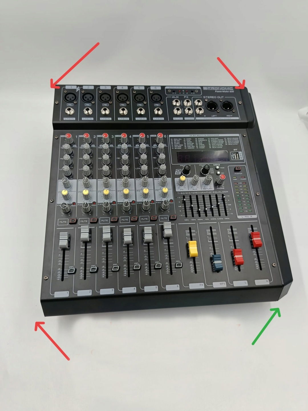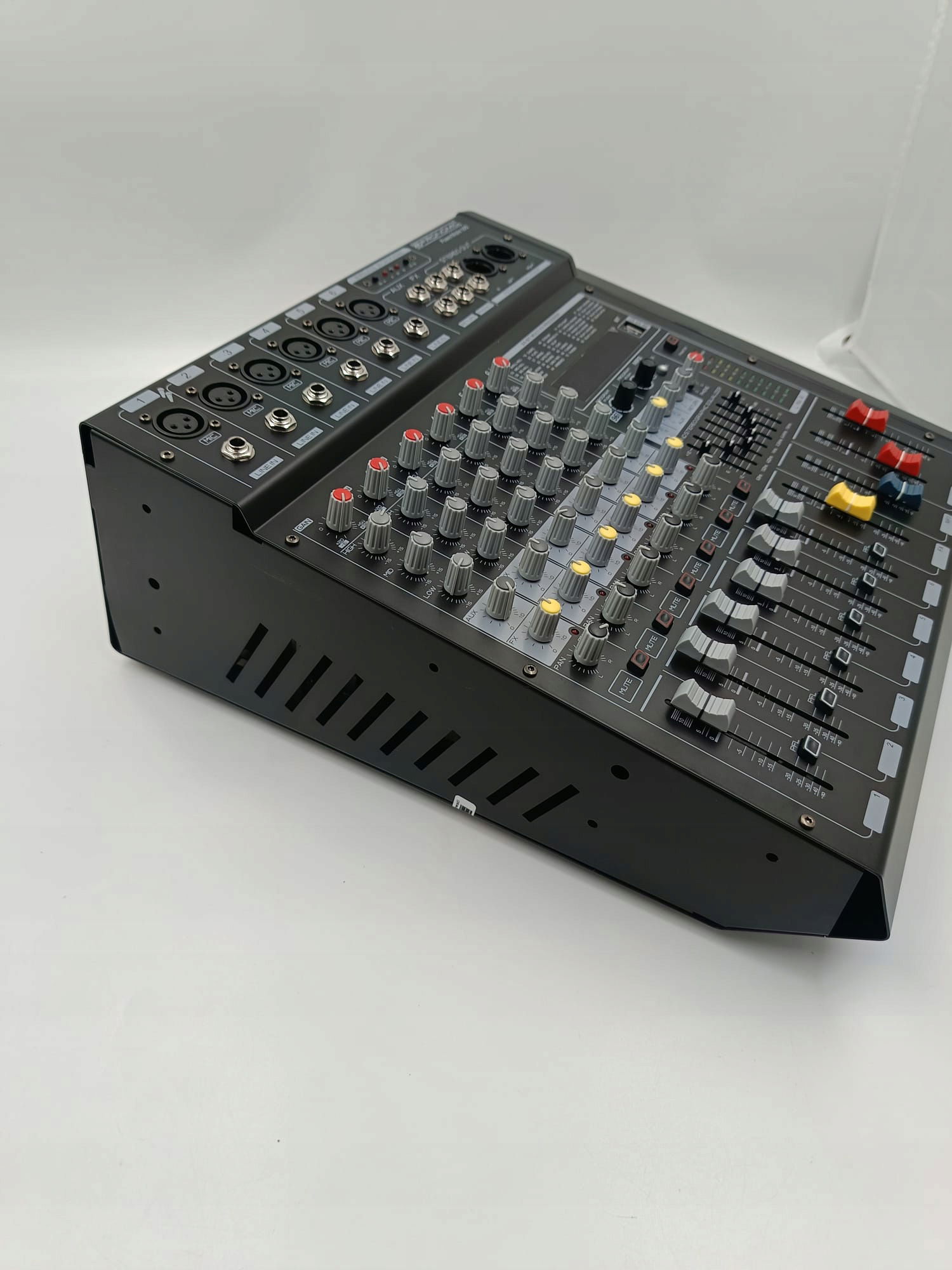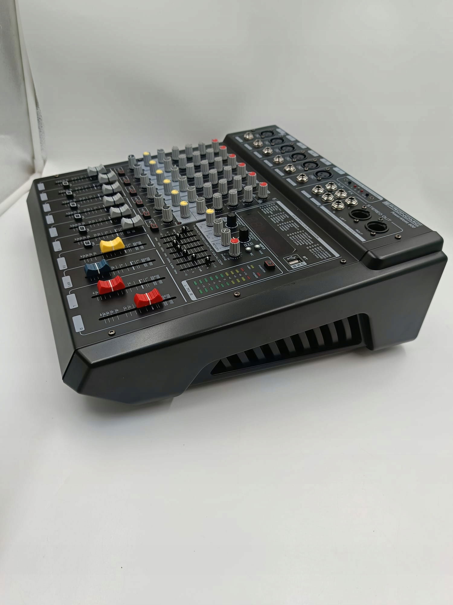 - PA POWERMIXER Z 6 KANAŁAMI - Wejście mikrofonowe w formacie XLR, symetryczne wejście liniowe (gniazdo 6,3 mm), regulacja wzmocnienia, 3-pasmowy korektor (± 15 dB), sterowanie AUX, sterowanie FX, regulacja panoramy, przycisk wyciszenia, przycisk PFL, suwak głośności (60 mm)
