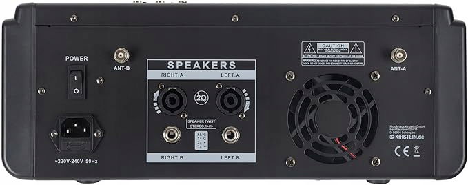 Liczne opcje połączeń umożliwiają bardzo elastyczną konfigurację: jak w przypadku każdej zwykłej konsoli miksującej, sygnał audio można skierować do zewnętrznego wzmacniacza mocy lub aktywnych głośników za pośrednictwem wyjść stereo. Wewnętrzny wzmacniacz mocy dostarcza również pasywne głośniki PA o mocy wyjściowej 2x 380 watów. Jako specjalny wyróżnik, Powermake ma również wyjście aux, które można wykorzystać do monitorowania sceny.