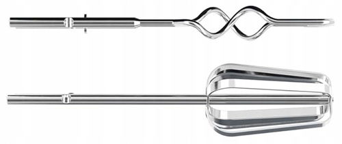 - Mikser wyposażony jest w stalowe trzepaczki do ubijania oraz haki do wyrabiania ciasta, co czyni go wszechstronnym pomocnikiem w kuchni.