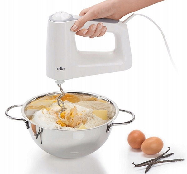 - Osadzony tak, aby nie obciążać ręki, pomimo kompaktowej konstrukcji, skutecznie poradzi sobie nawet z gęstymi masami czy cięższymi ciastami.