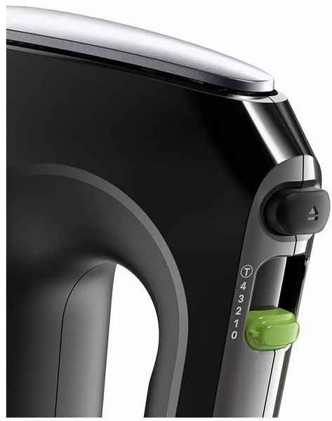 - Niezależnie od tego, czy wybierzesz hak do trzepaczki, czy do wyrabiania ciasta, wystarczy nacisnąć pokrętło i szybko wymienić akcesoria.