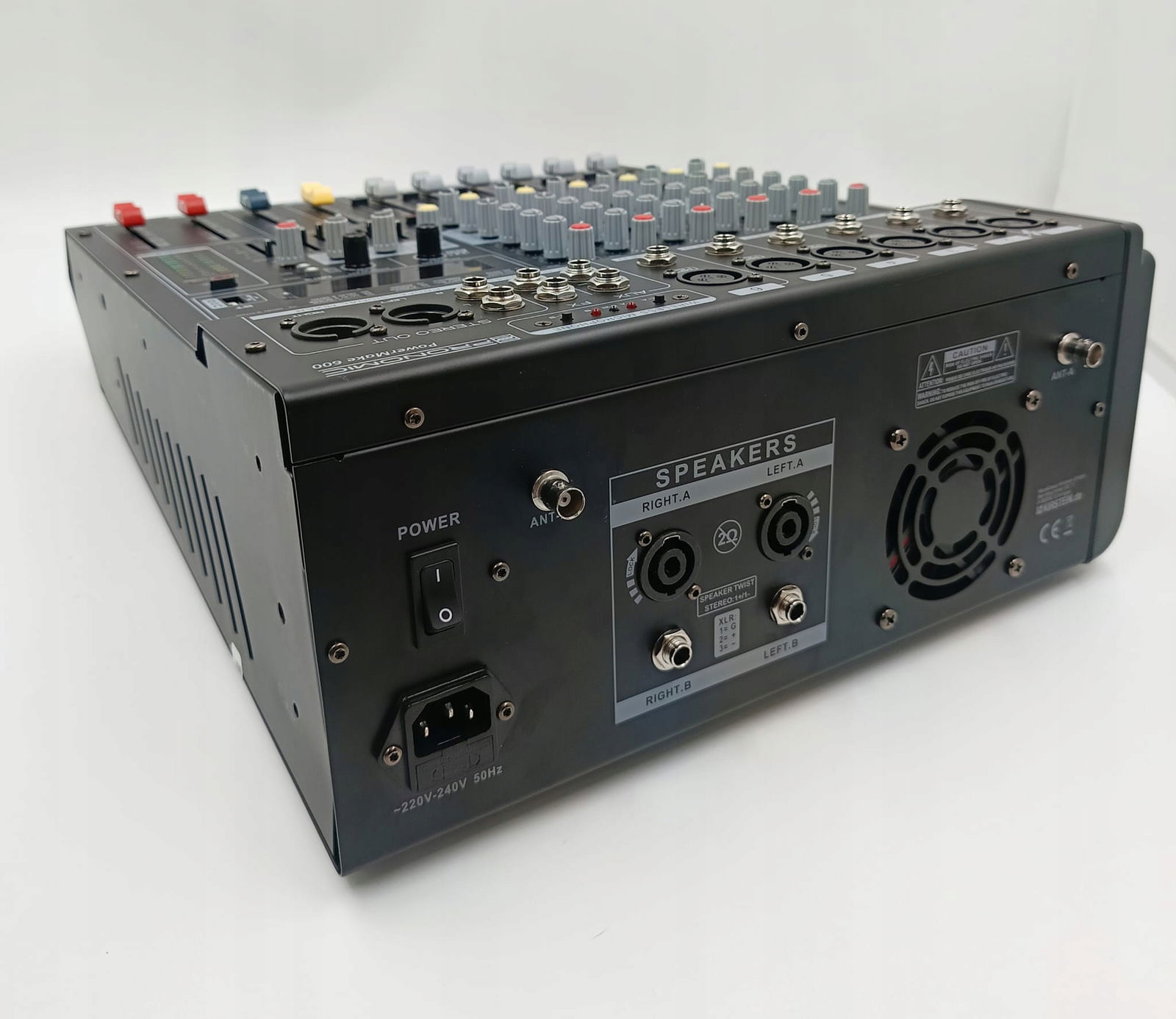 Liczne opcje połączeń umożliwiają bardzo elastyczną konfigurację: jak w przypadku każdej zwykłej konsoli miksującej, sygnał audio można skierować do zewnętrznego wzmacniacza mocy lub aktywnych głośników za pośrednictwem wyjść stereo. Wewnętrzny wzmacniacz mocy dostarcza również pasywne głośniki PA o mocy wyjściowej 2x 380 watów. Jako specjalny wyróżnik, Powermake ma również wyjście aux, które można wykorzystać do monitorowania sceny.