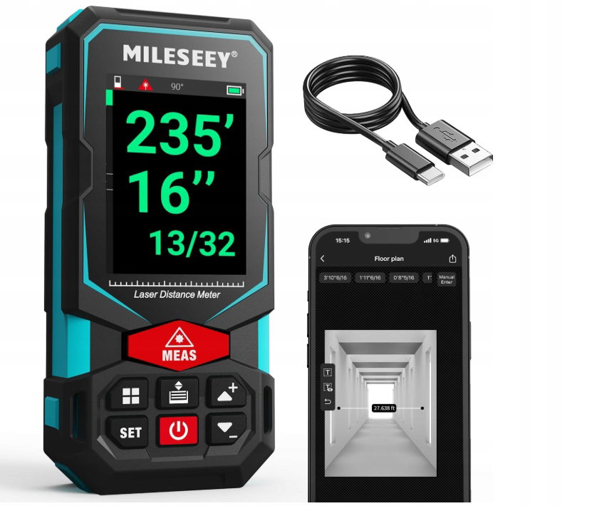 - ✴️Wiele funkcji pomiarowych: Laserowe urządzenie pomiarowe Mileseey S7 oferuje imponującą kolekcję 15 trybów pomiarowych, w tym pomiary trapezowe i tyczenie, a także tryby konwencjonalne, takie jak pomiar powierzchni, objętości, pomiar ciągły i twierdzenie Pitagorasa. Te zróżnicowane funkcje pomiarowe spełniają zróżnicowane potrzeby inżynierów, czyniąc urządzenie cennym i oszczędzającym czas narzędziem do szybkiego pomiaru dużych domów, pomieszczeń lub podwórek.