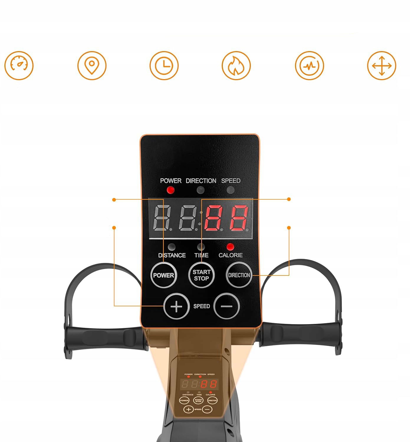 Wbudowany ekran LCD pokazuje najważniejsze parametry treningu: prędkość, czas/odległość oraz liczbę spalonych kalorii. Dzięki temu możesz na bieżąco monitorować swoje postępy i kontrolować efektywność ćwiczeń.