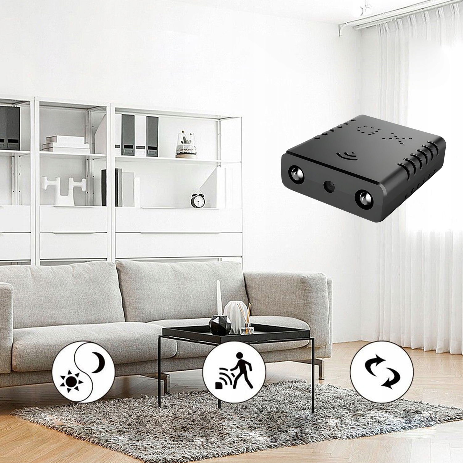 Ze względu na swój niewielki rozmiar, kamerę można niepostrzeżenie zamontować w wielu miejscach. Wystarczy podłączyć ją do zasilania przy pomocy dołączonego do zestawu przewodu i gotowe. Możesz wykorzystać do tego adapter sieciowy lub powerbank, który sprytnie ukryjesz razem z kamerą. Szeroki kąt widzenia obiektywu kamery - 110 stopni - pozwoli objąć zasięgiem niemal całe monitorowane pomieszczenie. Jakość FHD nagranego obrazu pozwala zaś na wychwycenie nawet najdrobniejszych szczegółów.
