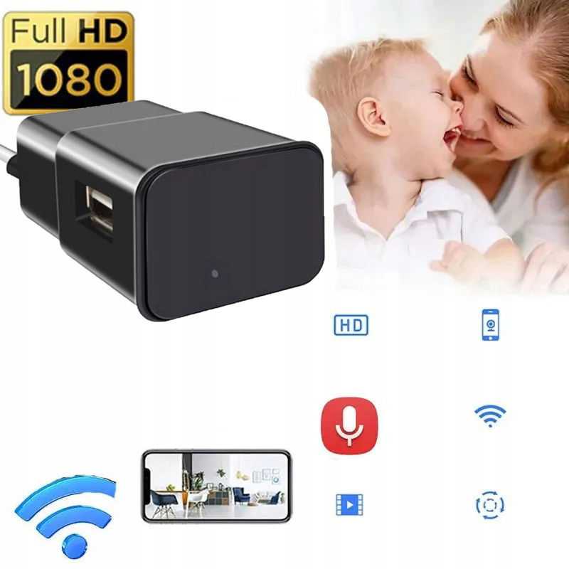 MINI KAMERA UKRYTA W ŁADOWARCE USB WI-FI DETEKCJA RUCHU POWIADOMIENIA W APP