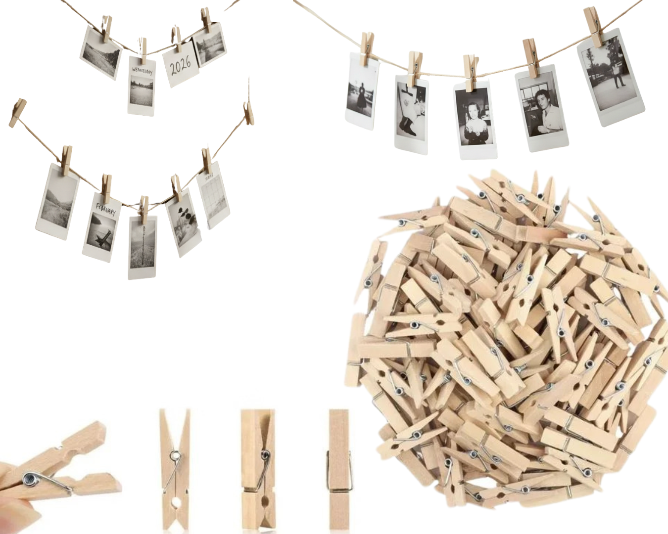 Wskazówka: Drewniane klamerki możesz łatwo spersonalizować! Można je malować farbami, ozdabiać brokatem lub oklejać taśmami washi, dopasowując je do kolorystyki Twojego wydarzenia.