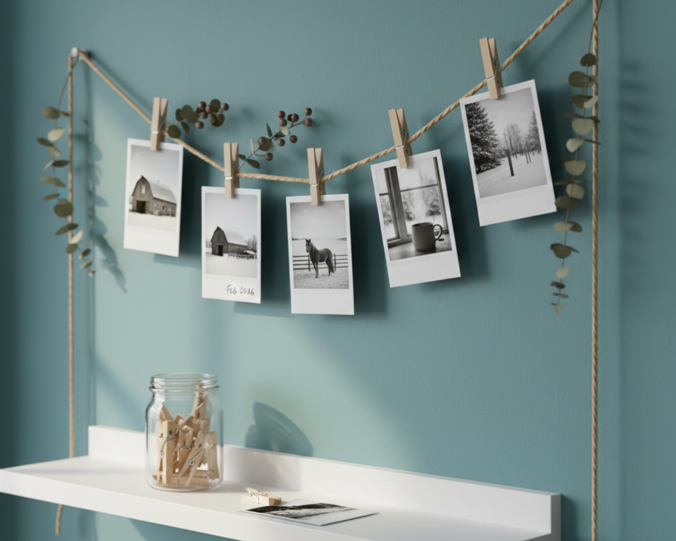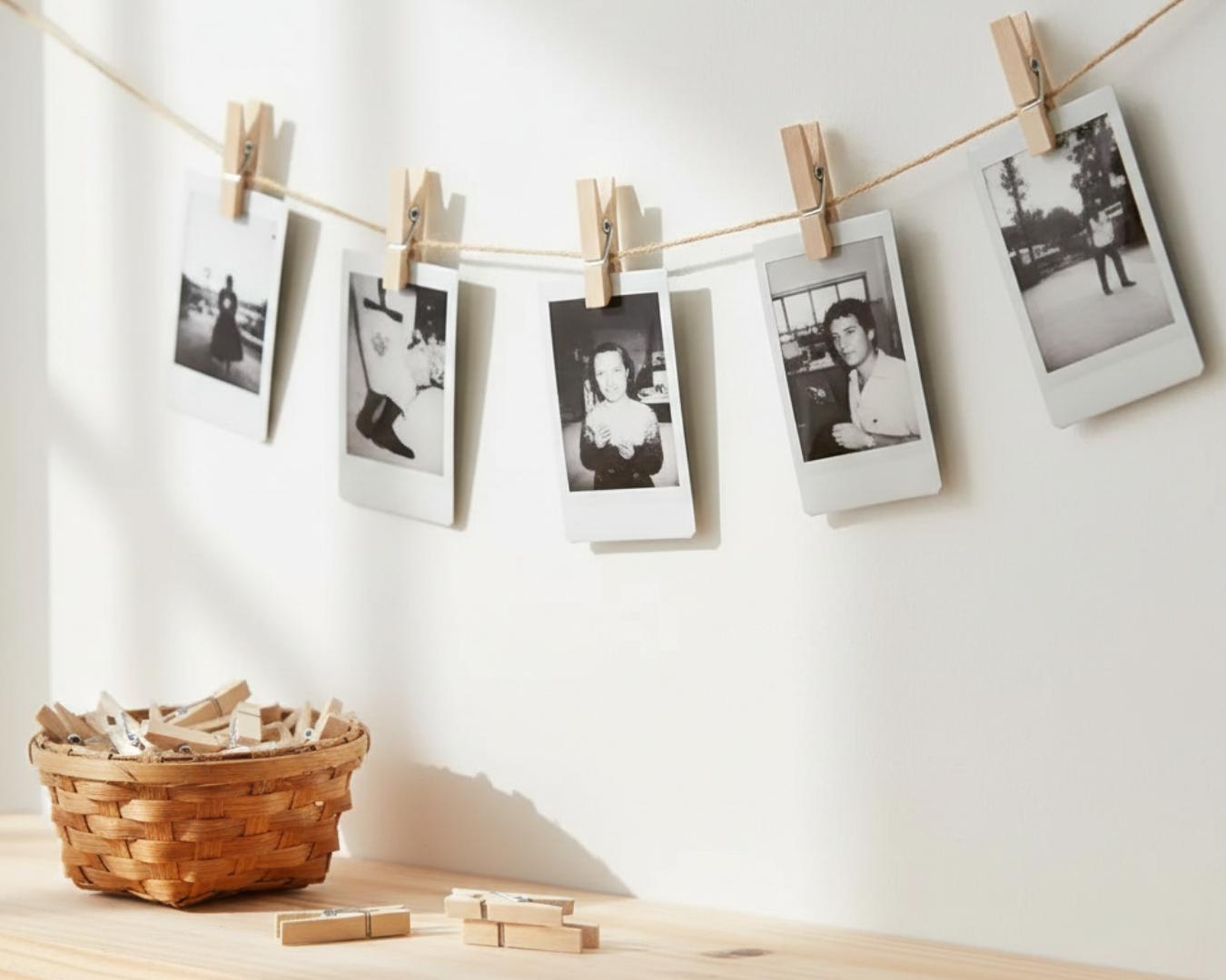 - Domowa galeria zdjęć: Stwórz unikalną girlandę ze swoimi ulubionymi wspomnieniami na ozdobnym sznurku.