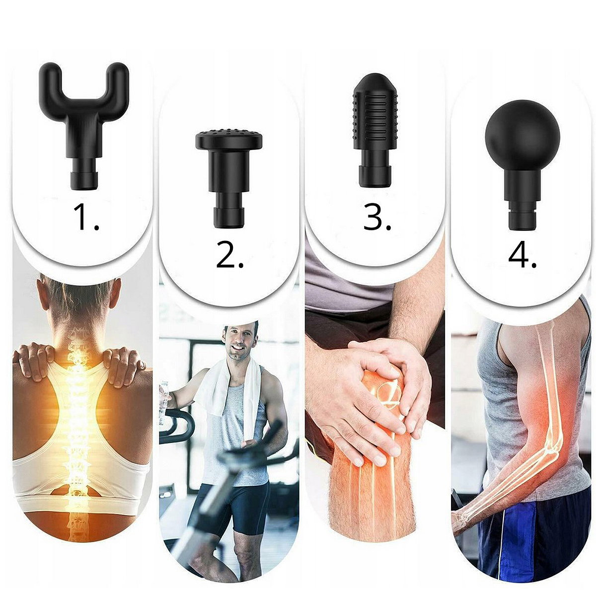 ⭐【6 poziomów prędkości i 4 głowice masujące】 Długie naciśnięcie przycisku funkcyjnego: włączanie/wyłączanie, wyposażone w 4 różne głowice masujące, które mogą złagodzić ból mięśni. Ten mini pistolet do masażu rozluźnia mięśnie i oferuje specyficzny zabieg dla każdej grupy mięśni. Skutecznie relaksuje także różne partie ciała. Dzięki 6 poziomom prędkości możesz dostosować intensywność masażu w zależności od preferencji.