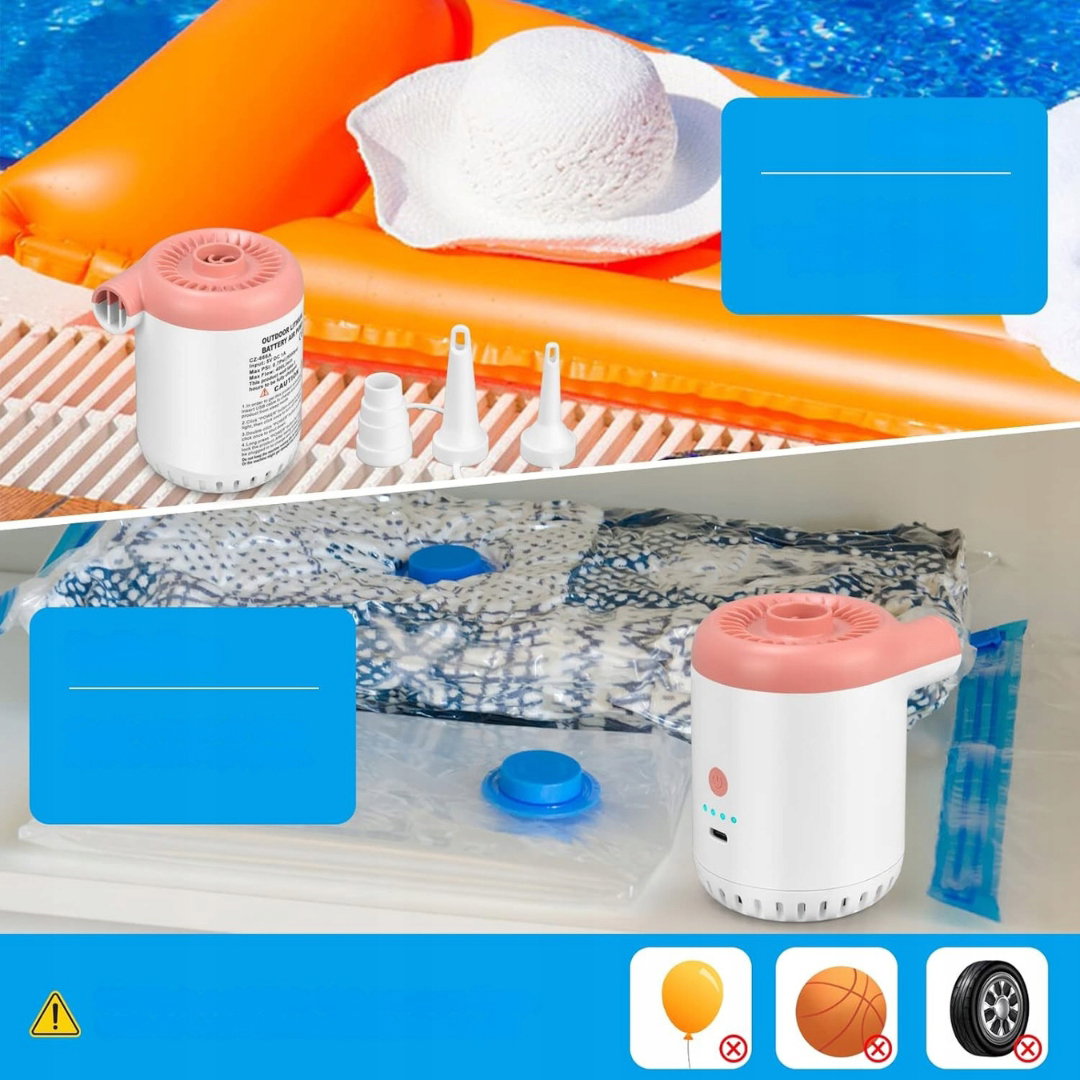 Dzięki wbudowanemu akumulatorowi 4000 mAh i portowi USB, umożliwia wygodne i szybkie pompowanie oraz odpompowywanie powietrza z różnych produktów dmuchanych, takich jak materace, baseny, piłki, zarówno w warunkach domowych, jak i podczas campingów czy plażowych zabaw.