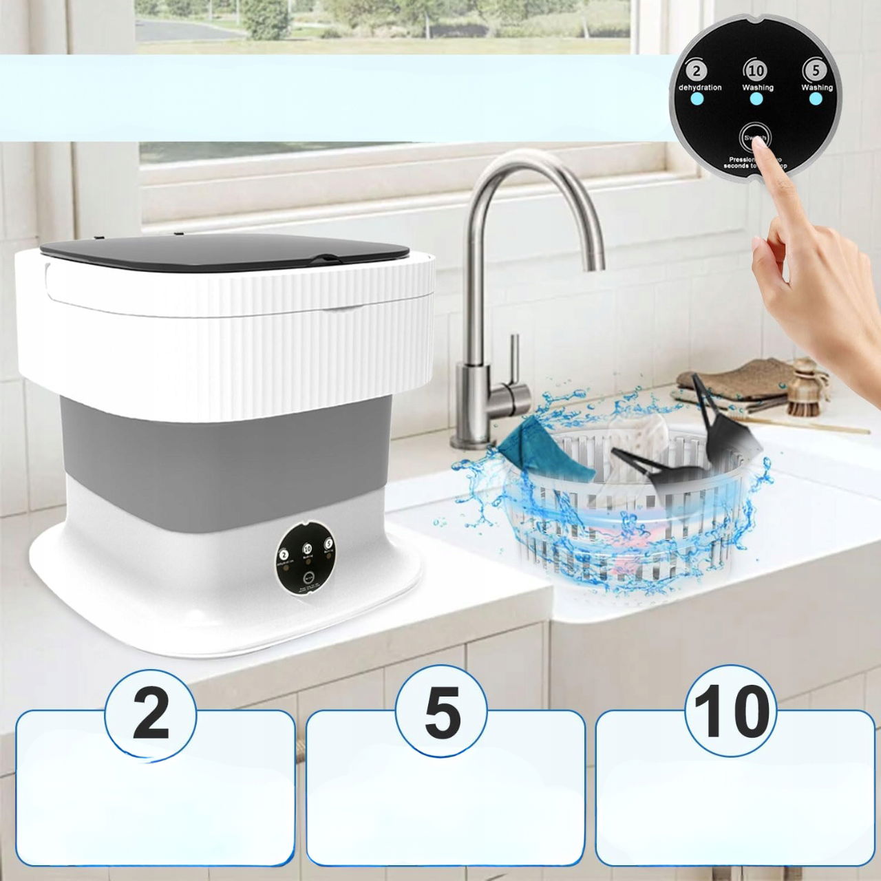 Ta mini pralka kempingowa 2 w 1 to idealne rozwiązanie dla osób, które chcą prać wygodnie nawet w ograniczonej przestrzeni. Z pojemnością 13 litrów i wsadem do 2 kg sprawdzi się idealnie do prania bielizny, dziecięcych ubranek, skarpetek czy lekkich tkanin. To kompaktowe urządzenie, które możesz zabrać wszędzie — do akademika, hotelu, kampera czy na kemping.