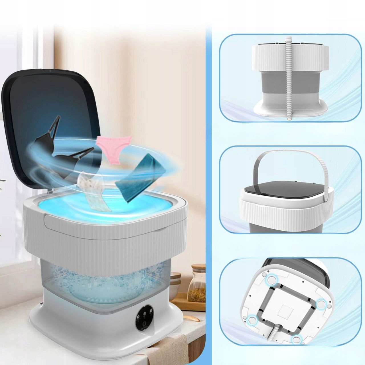 Dzięki funkcji prania i lekkiego wirowania, mini pralka skutecznie usuwa zabrudzenia z bielizny, ubrań niemowlęcych czy drobnych tkanin.