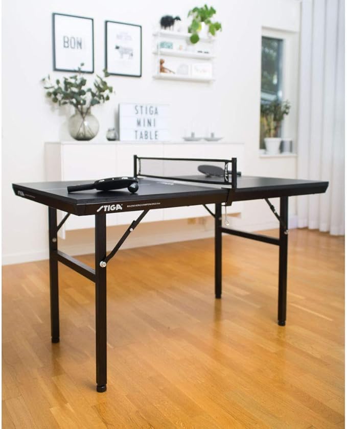 Stylowy, czarny stół wpasowuje się w wystrój domu i zajmuje minimalną ilość miejsca. Idealny dla tych, którzy chcą grać w tenisa stołowego w domu, ale nie mają miejsca na większy stół. Stół można również szybko i łatwo złożyć i odłożyć, gdy nie jest używany.