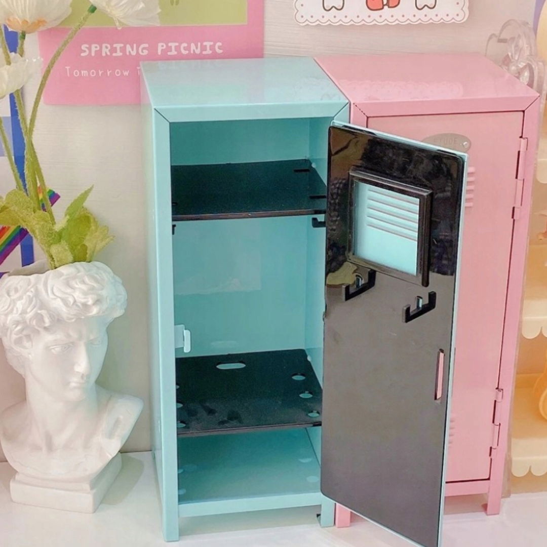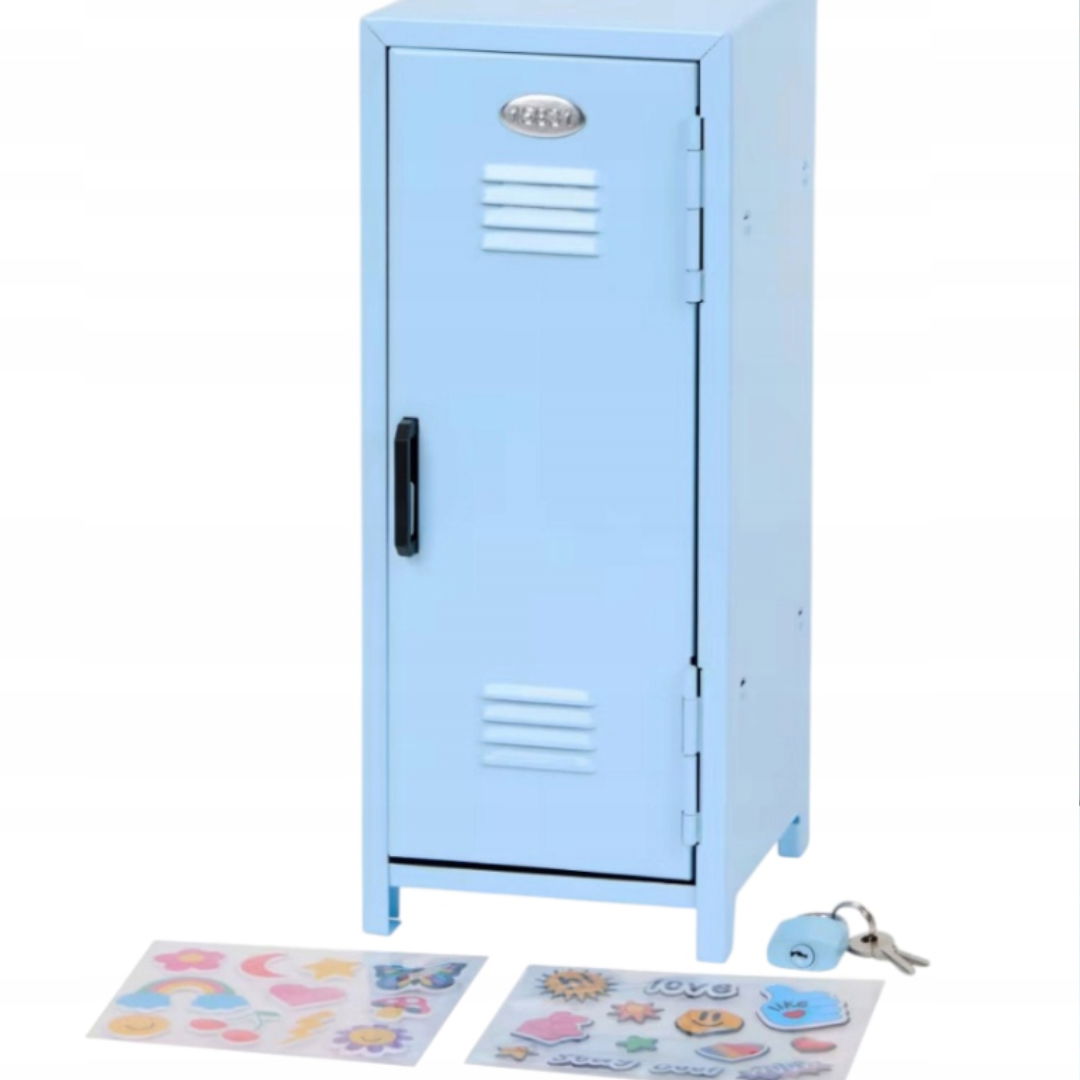 MINI SZAFKA SZKOLNA NA KŁÓDKĘ SEJF SKRYTKA SKARBONKA Z NAKLEJKAMI NIEBIESKA