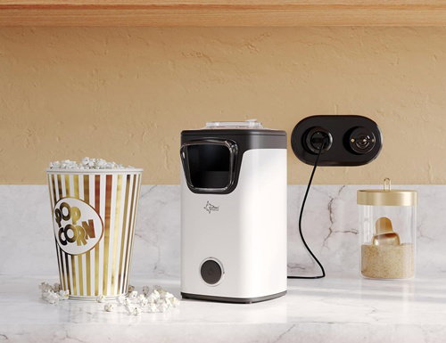 - Świeży popcorn! Dzięki elektrycznemu urządzeniu do robienia popcornu możesz w okamgnieniu wyczarować pyszny domowy popcorn dla każdego.