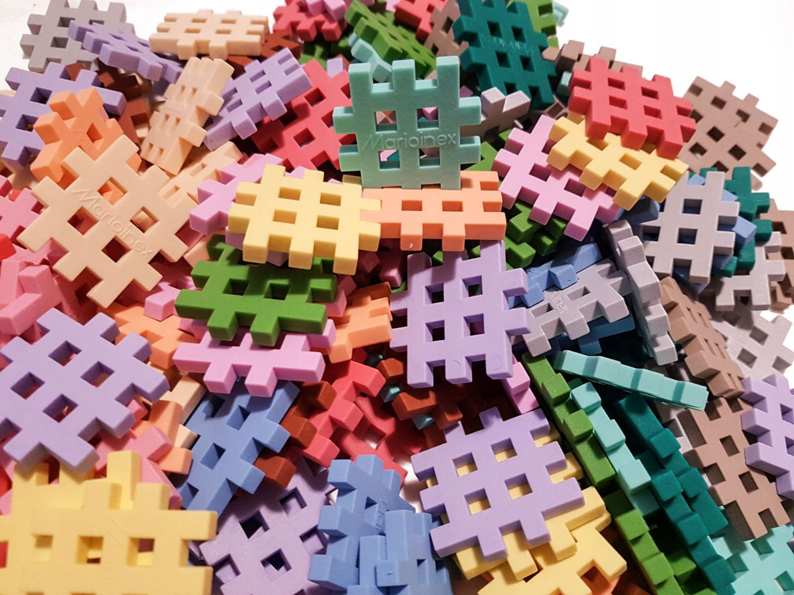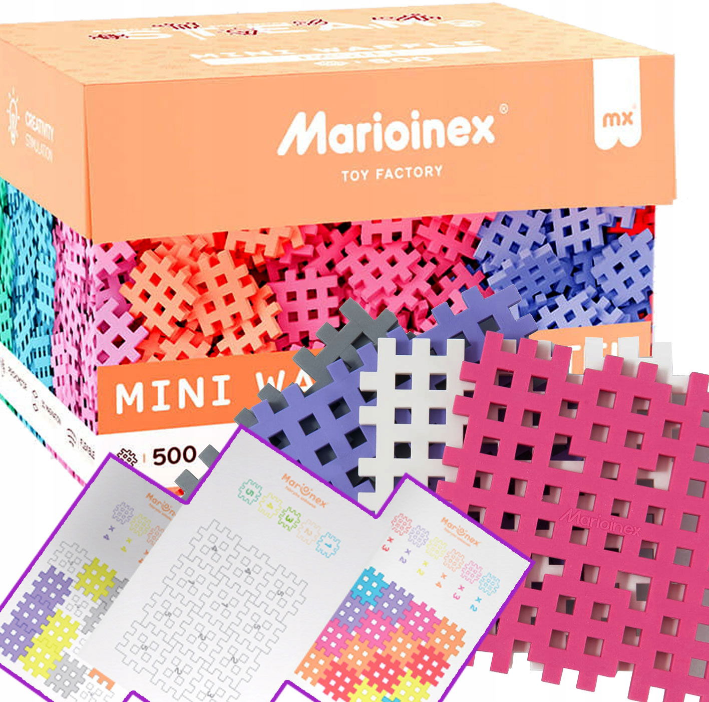 Marioinex Klocki Wafle Mini, 500 szt, kreatywne - pastelowe + 4 podstawki konstrukcyjne