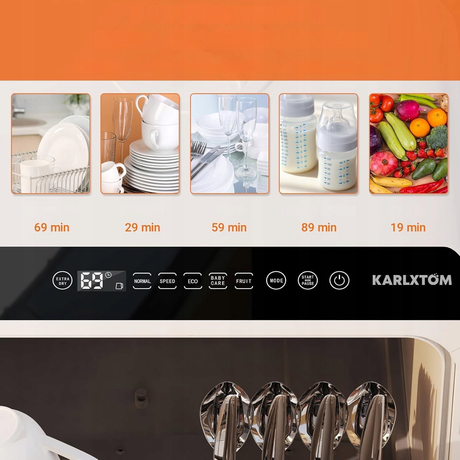 Karlxtom Zmywarka stołowa, 6 programów, mini zmywarka z kontrolą dotykową, automatyczne suszenie, pielęgnacja akcesoriów niemowlęcych, mycie owoców, idealna dla małych rodzin, par [Klasa energetyczna D]