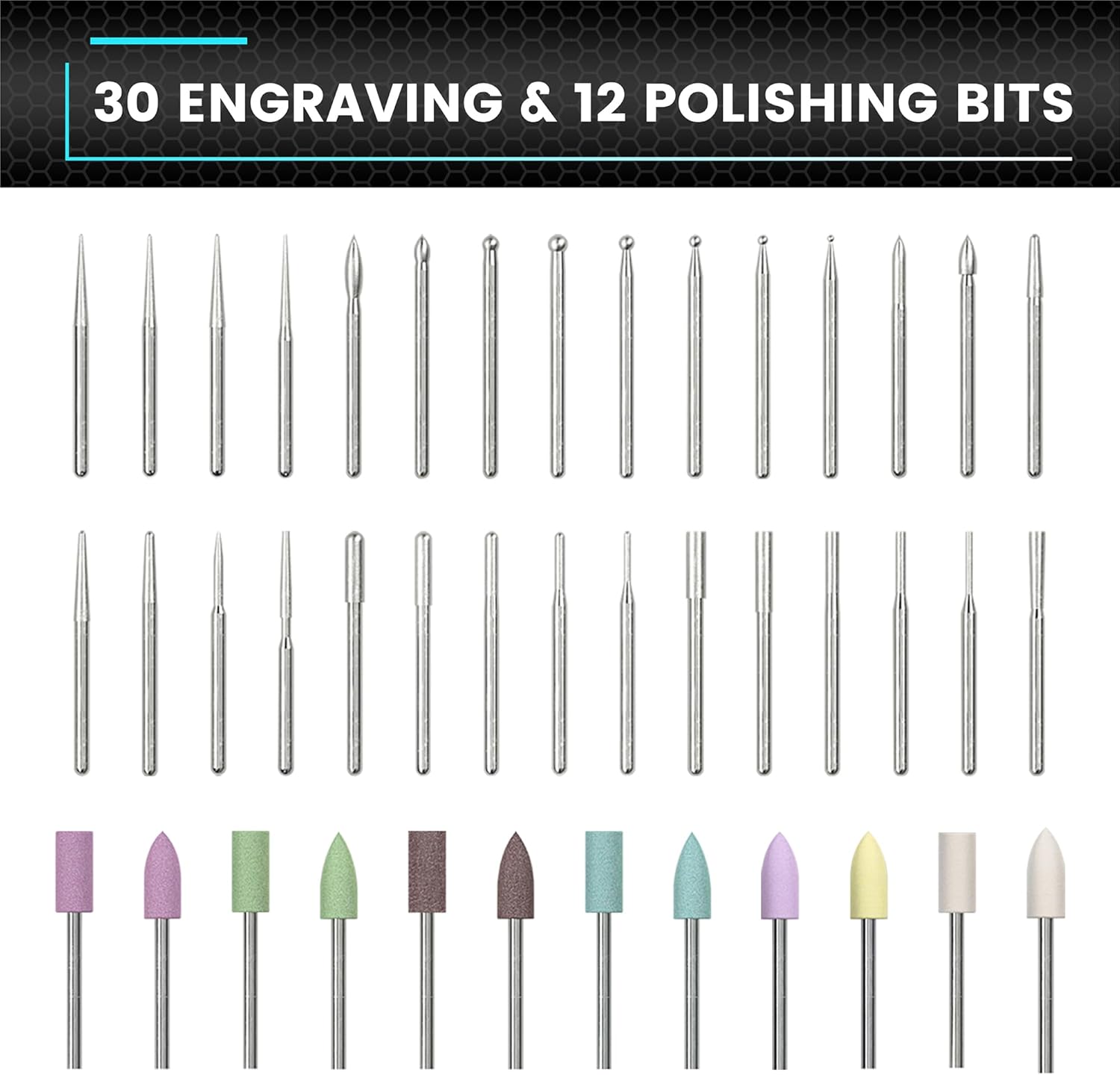 ✅ Dołączone komponenty: 1 pisak do grawerowania, 30 bitów do grawerowania, 12 polskich bitów, 1 worek do przechowywania, 1 podręcznik użytkownika, 1 kabel do ładowania USB