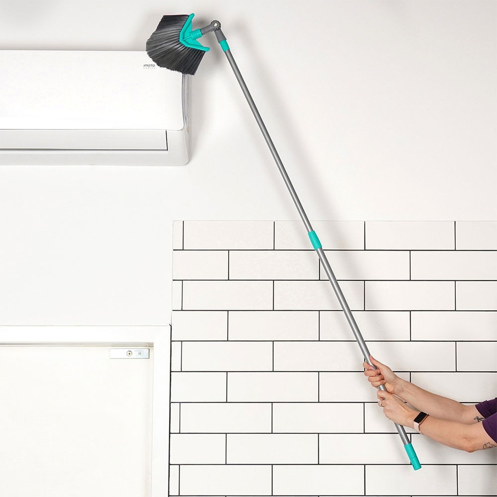 Miotła teleskopowa do kurzu i pajęczyn.Posiada narożną szczotkę, którą można ustawić w trzech pozycjach. Regulowany drążek pozwoli na dostosowanie odpowiedniej długości miotły do czyszczonej powierzchni. Narożna szczotka może być używana na różnych powierzchniach, w tym na drewnie, płytkach, betonie i innych. Jest przydatna zarówno w domu, jak i w miejscach pracy, takich jak biura czy magazyny.