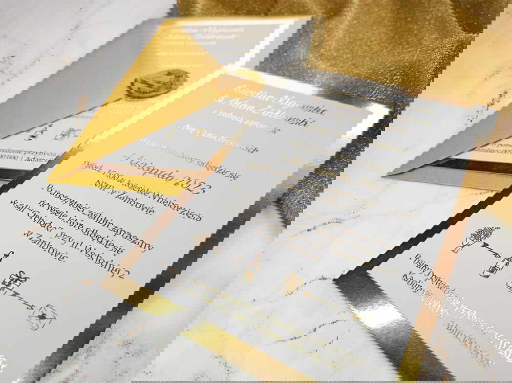 Zaproszenia ślubne glamour MIRROR – złote