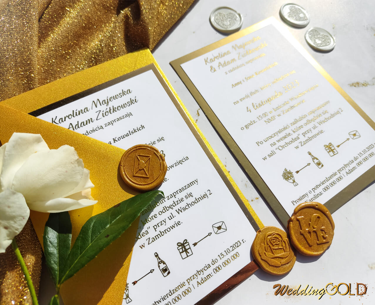 MIRROR – złote zaproszenia ślubne glamour