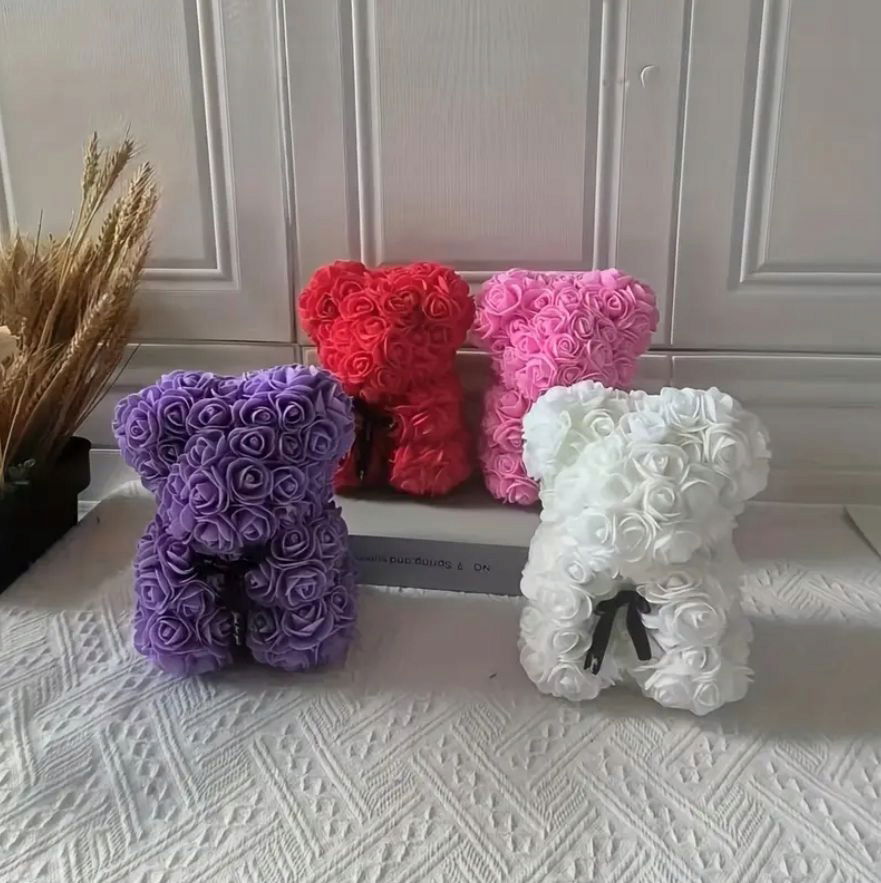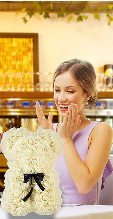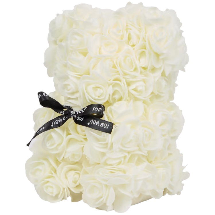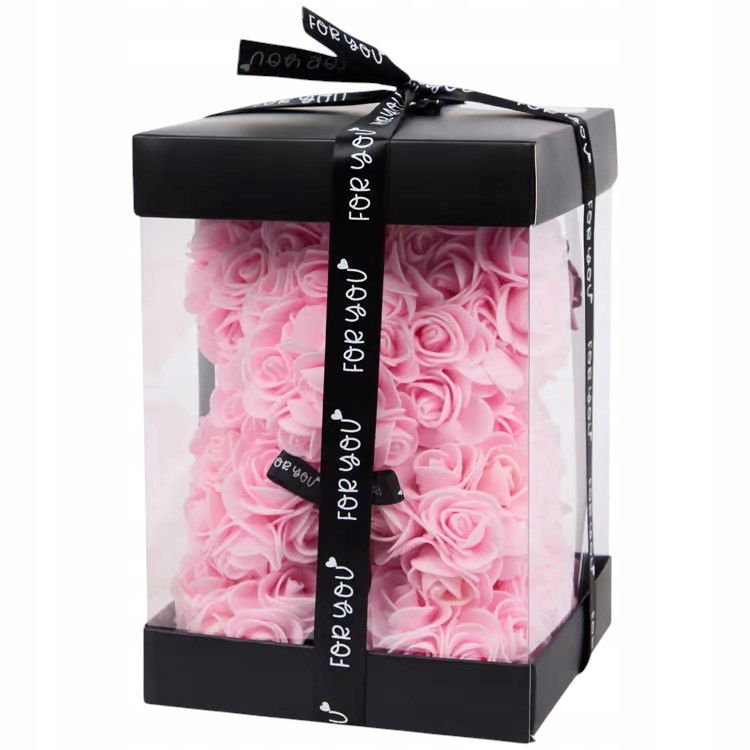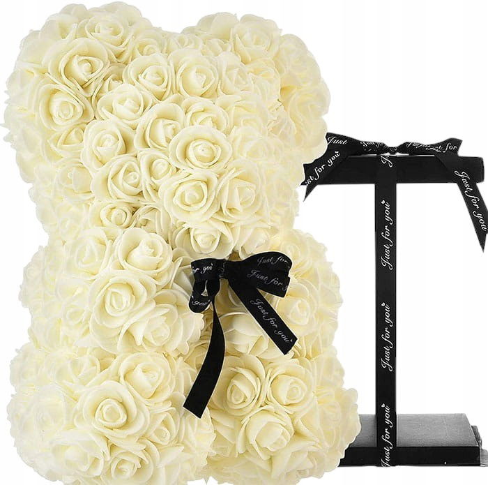 Miś został ręcznie wykonany z najwyższą starannością z tworzywa PE, co sprawia, że róże są wytrzymałe, bezzapachowe i przyjazne dla alergików.