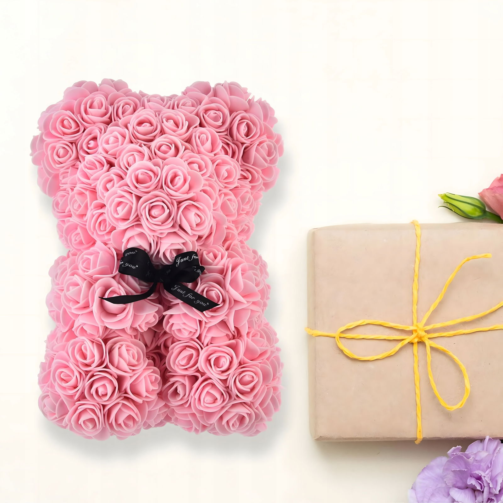 Zamiast kwiatów, które szybko tracą świeżość, ten różany miś zachowuje piękny wygląd przez lata. Wykonany z setek drobnych, dekoracyjnych różyczek staje się pamiątką ważnych chwil i wyjątkowych okazji. Nie wymaga pielęgnacji, dzięki czemu zawsze wygląda estetycznie i pozostaje w idealnej formie.