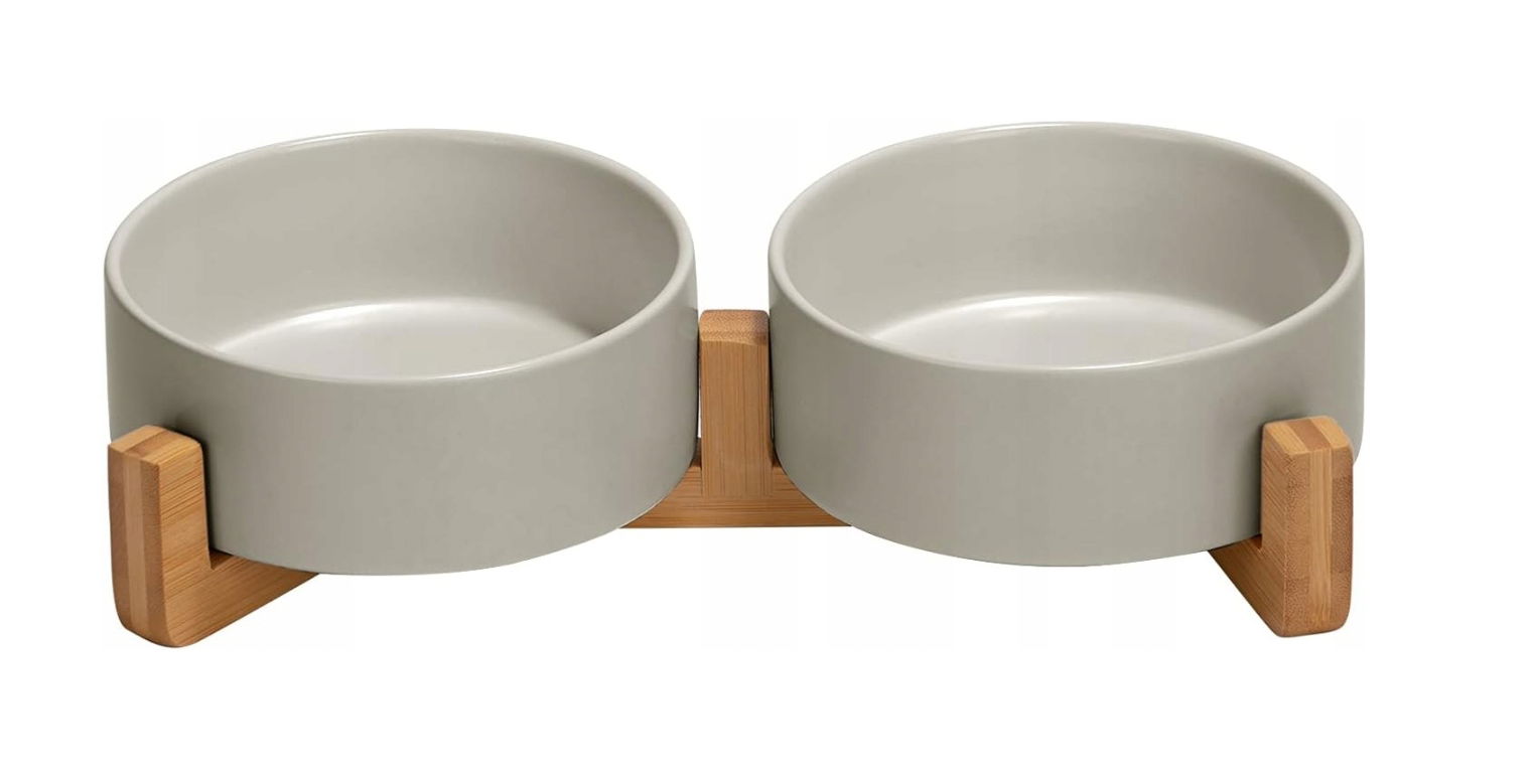 Miska ceramiczna Spunkyjunky 400ml z bambusowym stojakiem 2szt szara