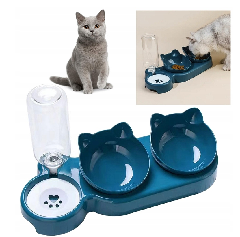 - Zestaw 3 w 1: W komplecie znajdują się dwie oddzielne miski – jedna przeznaczona na karmę, a druga na wodę – oraz dodatkowa butelka o pojemności 500 ml, która automatycznie uzupełnia miskę, eliminując konieczność częstego dolewania.